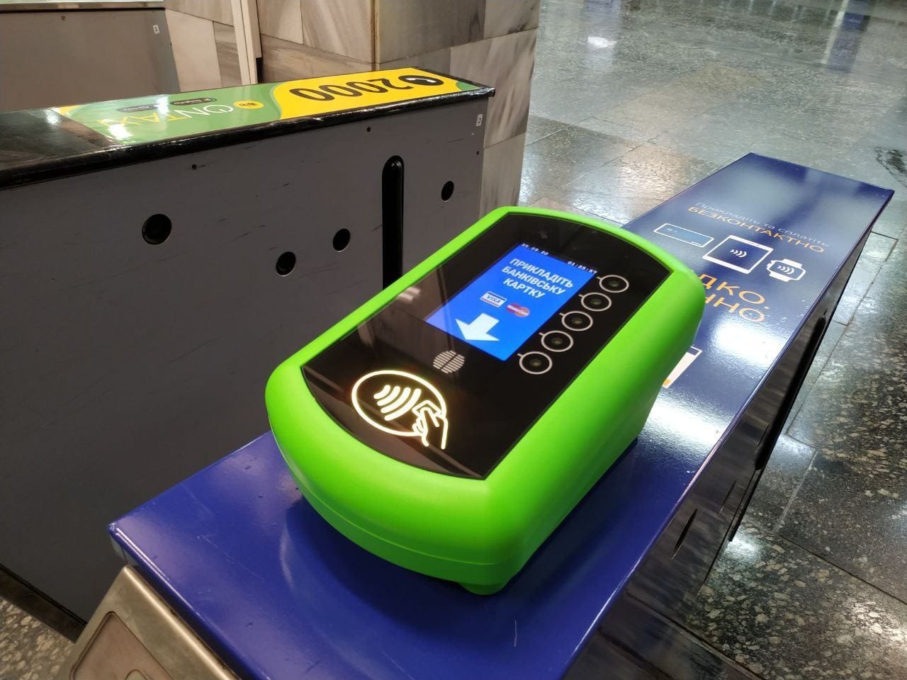 В Харькове на станции метро "Госпром" установили терминал принимающий к оплате банковские карты Visa и MasterCard.