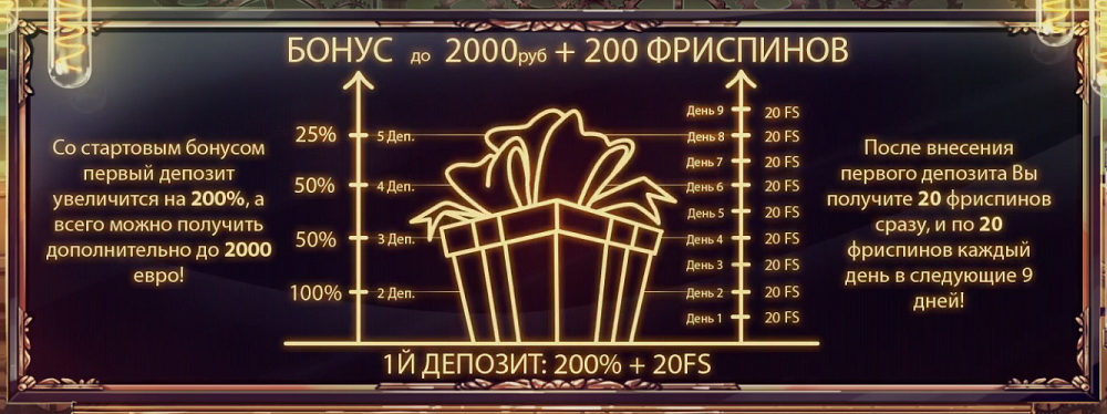Бонусы бывают разных форм и размеров. Самое популярное предложение, это Велкам бонус. Все новые игроки могут получить вознаграждение, которое часто приходит в виде дополнительной денежной суммы, равной сумме первого пополнения игрового счета. Вторым, популярным, бонусом являются Фри Спины - бесплатные вращения при первом пополнении баланса. Третьим популярным бонусом является редкий Бездепозитный бонус.