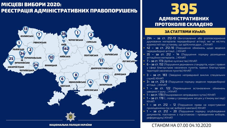 "С 5 сентября территориальные органы Национальной полиции зарегистрировали 2393 заявления и сообщения, связанных с избирательным процессом", - отметили в МВД.