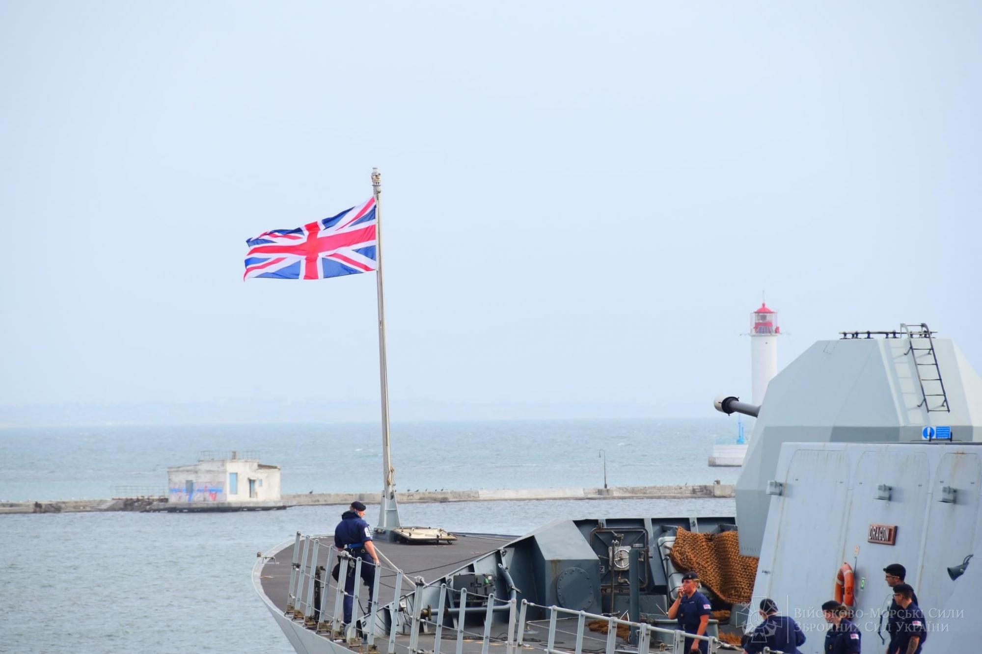 Сегодня, 7 октября, в Одесский морской порт в рамках дружественного визита прибыл эсминец Королевских ВМС Великобритании «Dragon». В план визита войдет проведение протокольной встречи между делегациями ВМС двух стран, совместные корабельные тренировки на борту британского эсминца, а также проведения совместной тренировки в море типа «PASSEX».