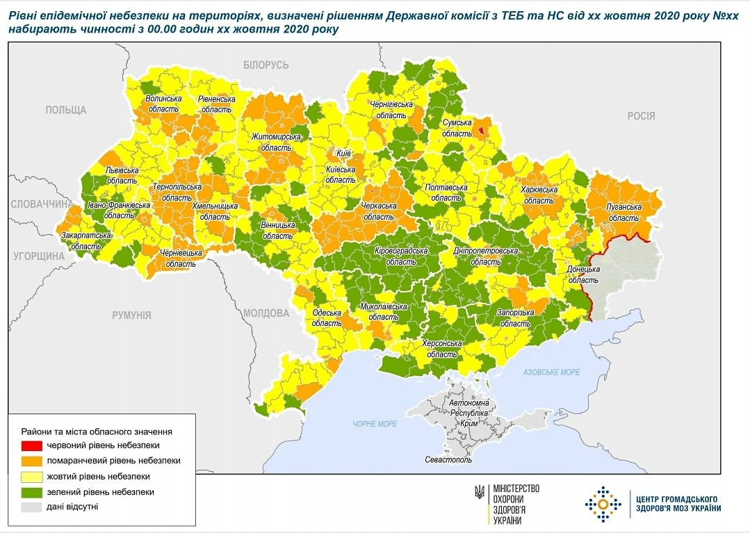 В Украине начало действовать новое эпидемическое зонирование. Оно устанавливается на 14 дней. Об этом сообщило Министерство здравоохранения.