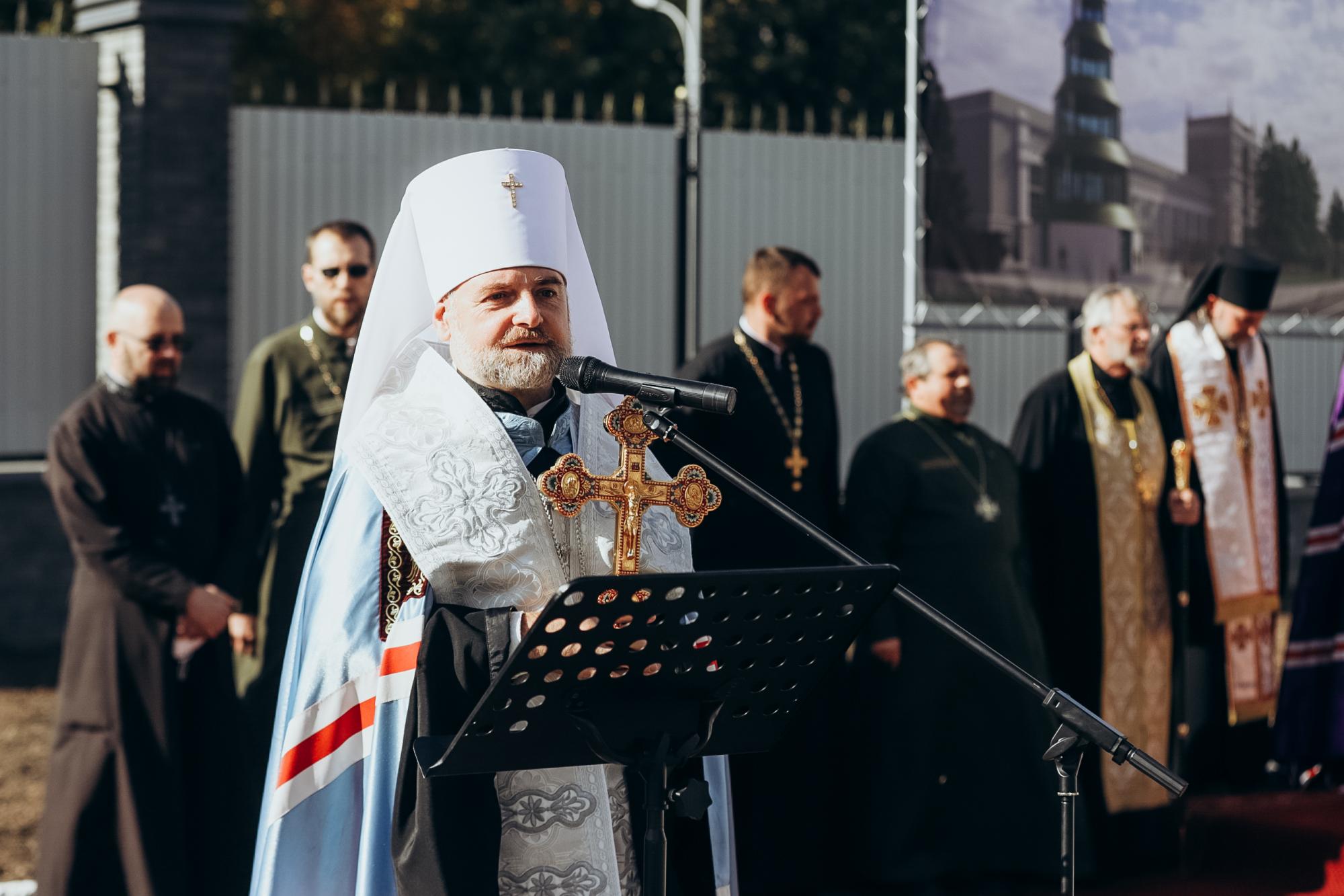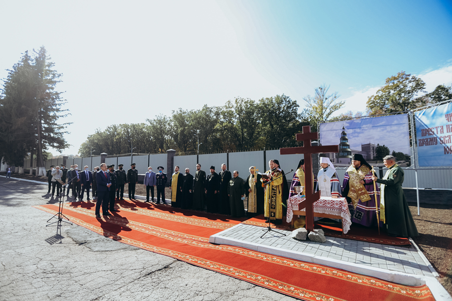 «Сотні років тому наші козаки, стрільці йшли у бій разом зі священниками, які надихали їх не боятися ворога і захищати рідну землю. Саме для того, щоб поєднати військовий дух і Дух Божий сьогодні на території оперативної бригади Нацгвардії ми закладаємо перший камінь храму», – зазначив заступник міністра внутрішніх справ Антон Геращенко.