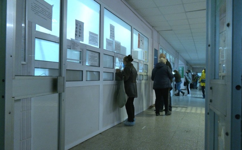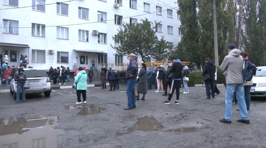 У поликлиники №6 в районе Салтовки в Харькове приема ожидали около сотни человек.