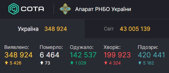 73 пациента скончались за последние сутки.Таковы данные системы мониторинга СНБО Украины.