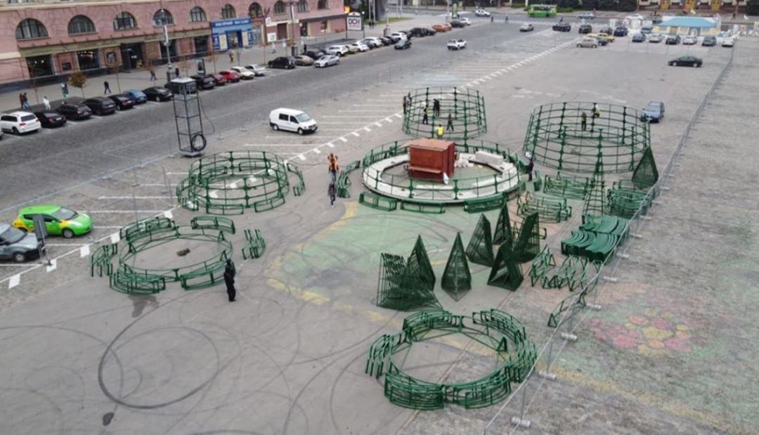 В Харькове начали подготовку к новогодним праздникам - на площади Свободы уже разграничили место, где будет стоять новогодняя елка.