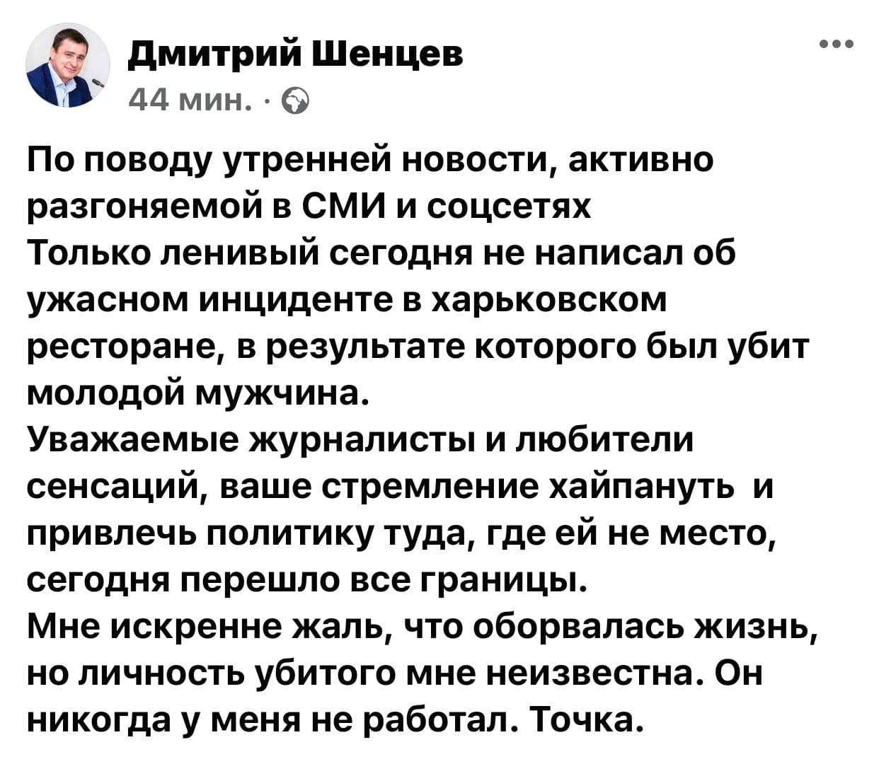 Полиция Харькова выясняет обстоятельства его смерти.