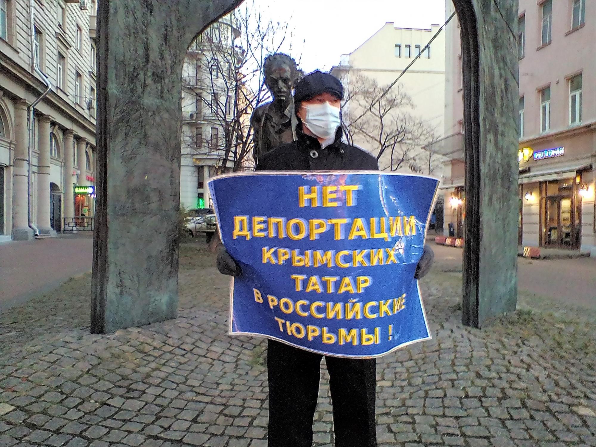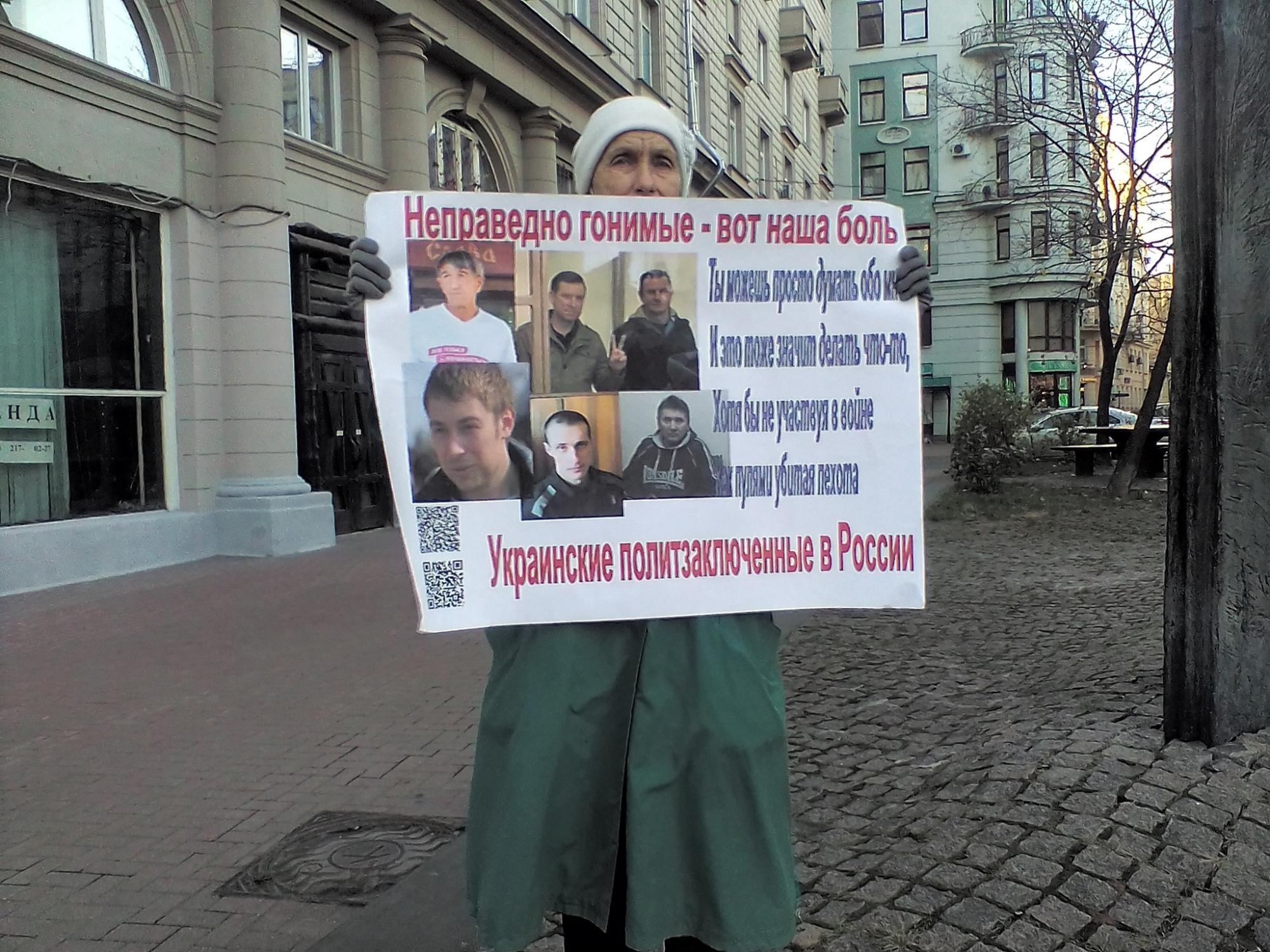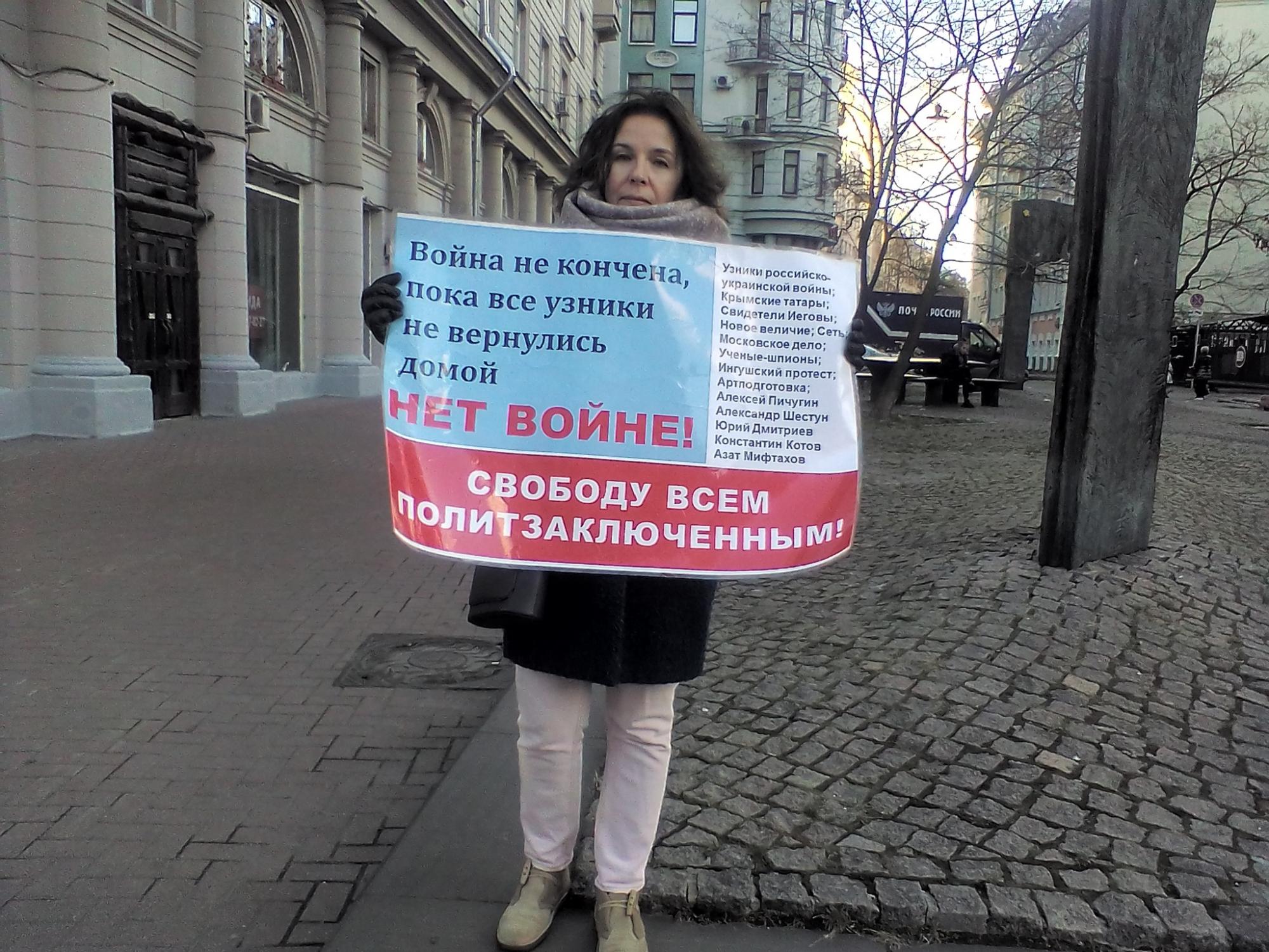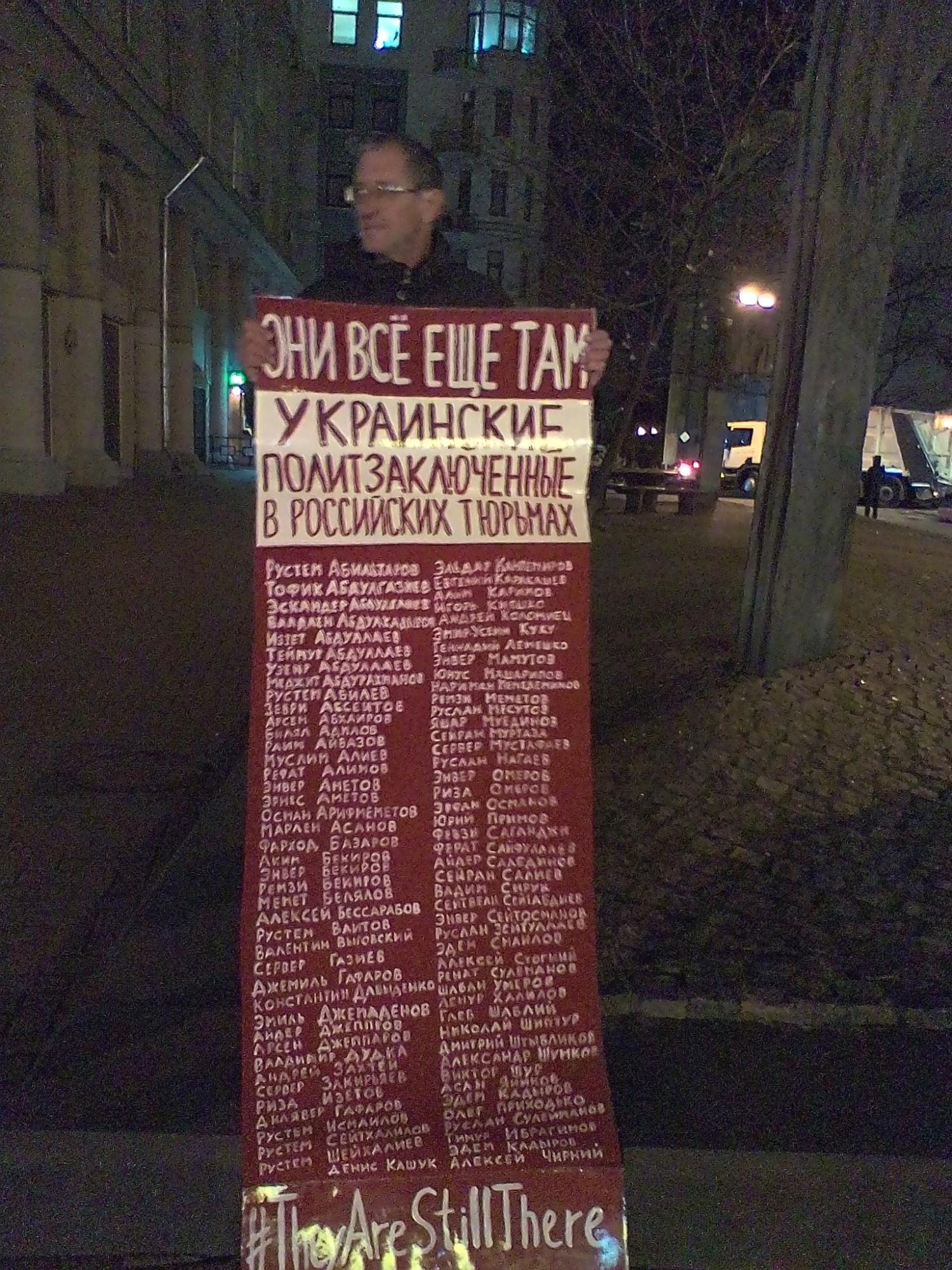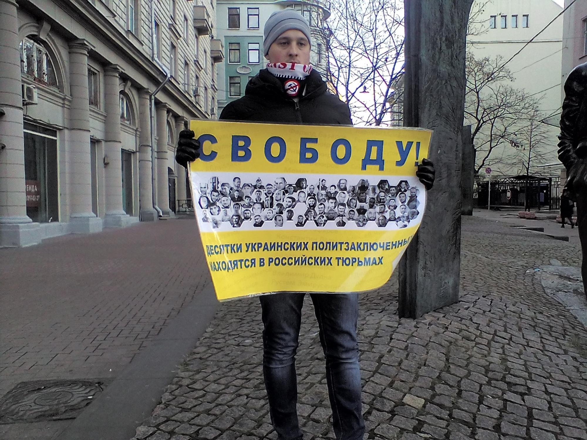 В центре Москвы в субботу, 7 ноября, прошли одиночные пикеты в поддержку украинских заключенных в российских тюрьмах.