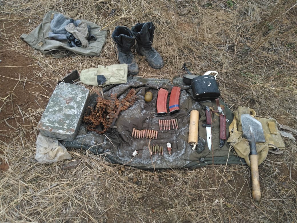 Кроме того, в ходе дальнейшего осмотра прилегающей местности, правоохранители обнаружили патроны различных калибров, гранаты, магазины к автомату, дымовую шашку, штык-нож и другие элементы военного снаряжения.
