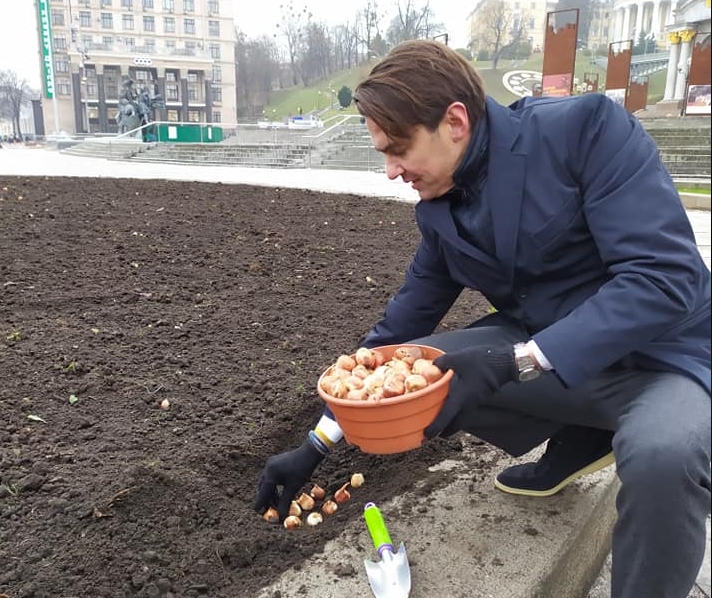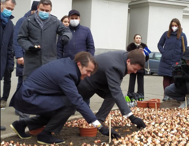 В центре Киева высадили сто тысяч тюльпанов, которые городу подарило Королевство Нидерландов. По замыслу, они будут символизировать уважение нидерландцев героям Небесной сотни.