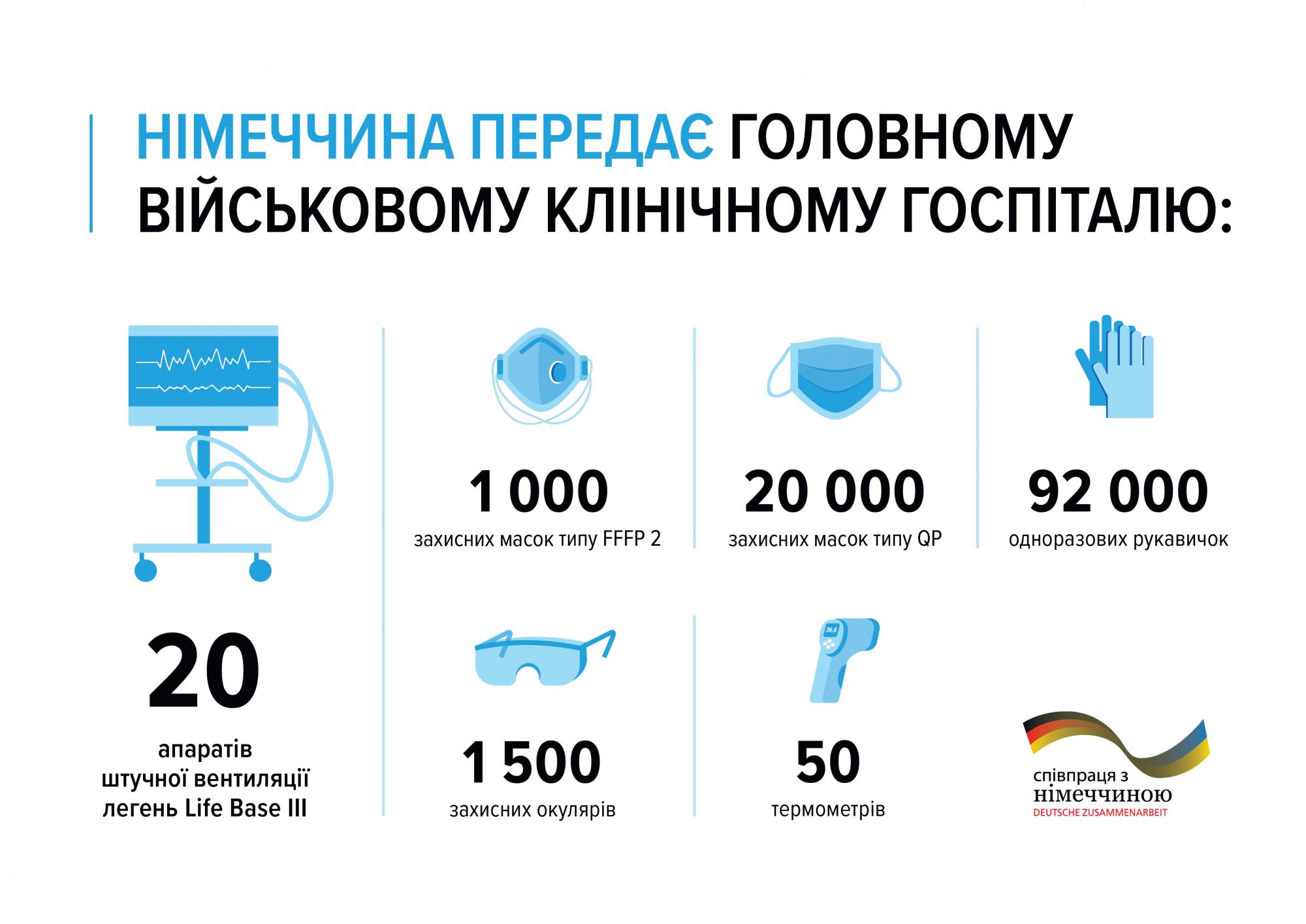 Вооруженные Силы Германии - Бундесвер – предоставляют гуманитарную помощь Украине регулярно. Так, с 2014 года 134 солдата Вооруженных Сил Украины, которые получили ранения во время конфликта на Востоке Украины, прошли лечение в пяти немецких военных госпиталях. Еще одним из важных аспектов поддержки украинской военной медицины заключается в улучшении ее оснащения медицинскими приборами. В 2019 году Главному военному клиническому госпиталю в Киеве была передана диагностическая аппаратура стоимостью 1,5 миллиона евро. В 2020 году сумма помощи, направленная на приобретение медицинского оборудования, составляет в среднем 3,1 миллиона евро.