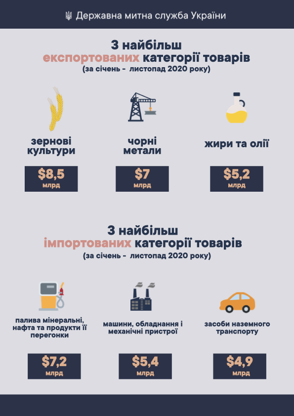 В тройку наиболее экспортируемых из Украины товаров относятся: