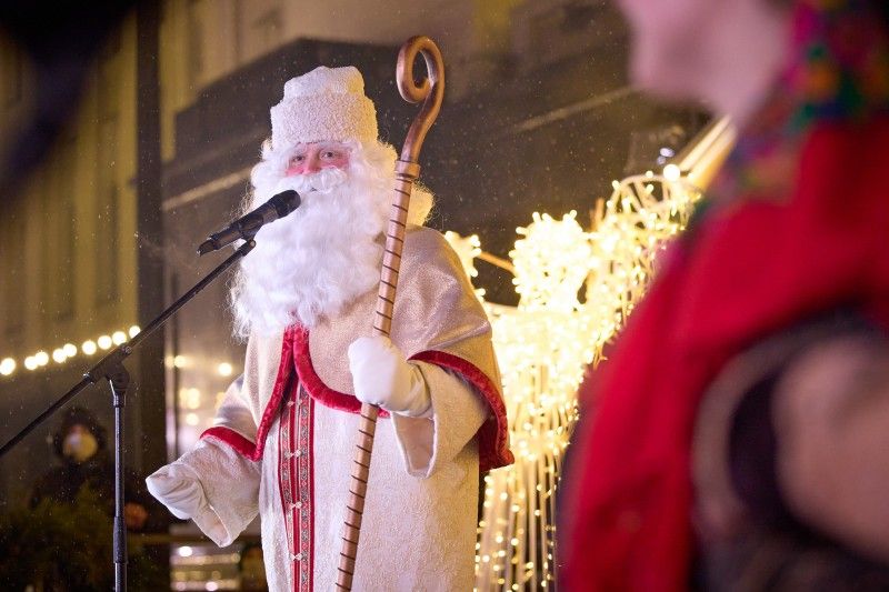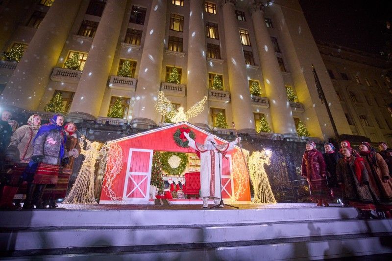 Президентская чета пожелала украинцам веселых новогодних праздников и прогулялась по территории праздничного города. Президент с супругой осмотрели резиденцию Святого Николая и приобрели несколько новогодних сувениров.