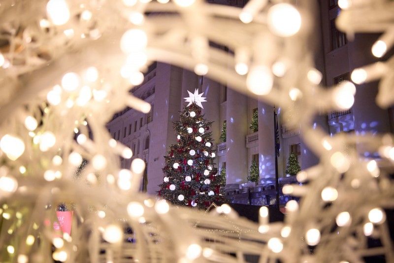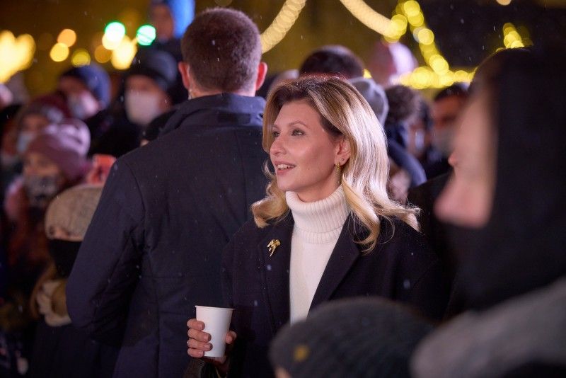 Президент Украины Владимир Зеленский с супругой Еленой посетили праздничной городок для детей и взрослых "Николай принимает друзей", который будет работать непосредственно возле здания Офиса главы государства на ул.Банковой в центре Киева во время новогодних праздников.