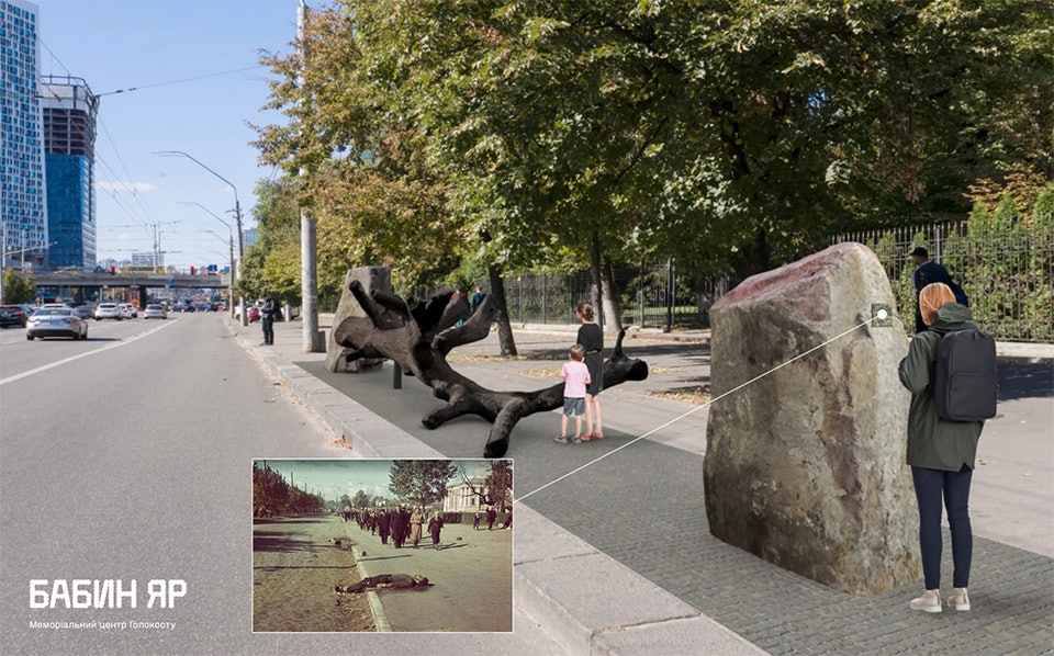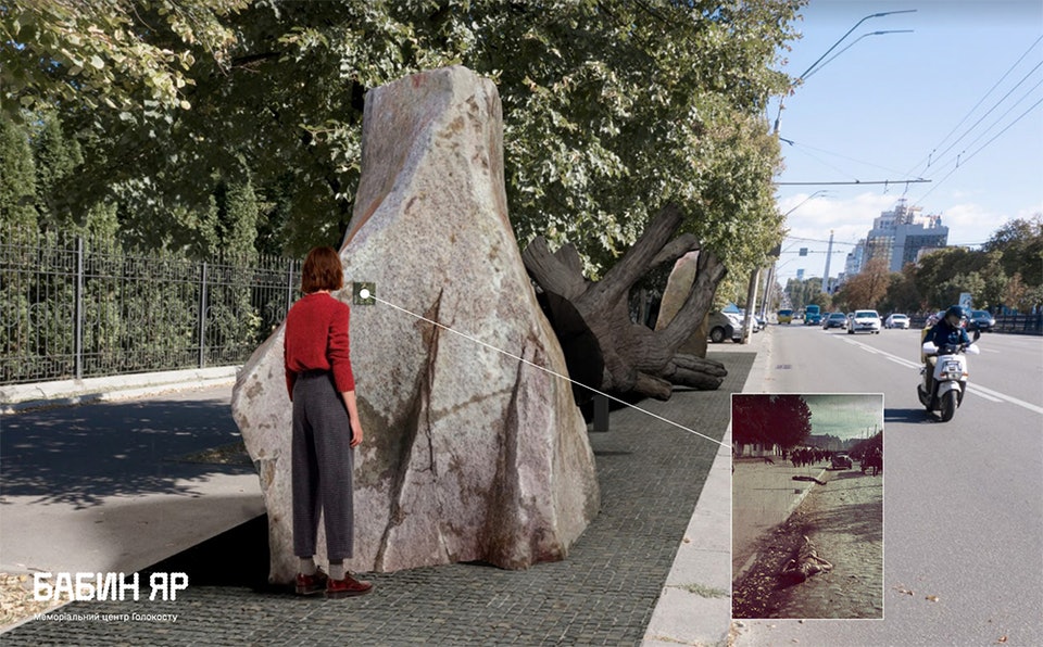 В январе Мемориальный центр Холокоста «Бабий Яр» представит в Киеве новый арт-объект. Инсталляцию «Взгляд в прошлое» установят на проспекте Победы, возле Министерства образования и науки Украины. Она представляет собой два валуна, между которыми лежит дерево.