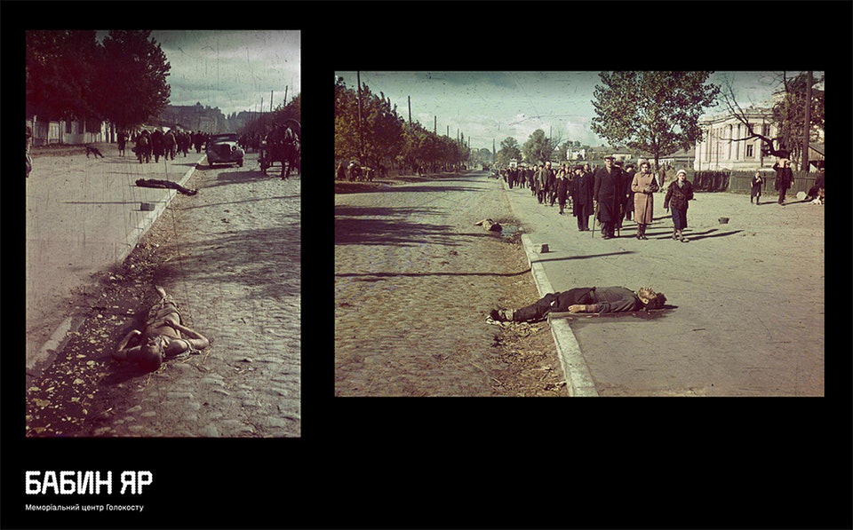 В сентябре центр открыл четыре объекта инсталляции с фотографиями Йоханнеса Хеле на территории Бабьего Яра. Установленные монокуляры показывают, как выглядела территория в начале октября 1941 года, сразу после массовых расстрелов. Арт-объекты находятся в точках, определенных с помощью 3D-моделирования, — именно там, где сделал свои снимки немецкий фотограф, уточняет birdinflight.