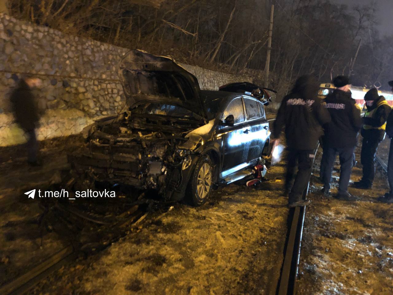 В Харькове на спуске Веснина на трамвайных рельсах оказался автомобиль Toyota RAV4, внедорожник, водитель сбежал.