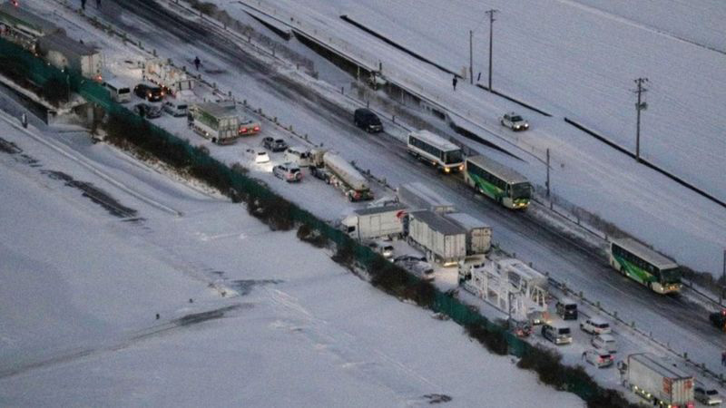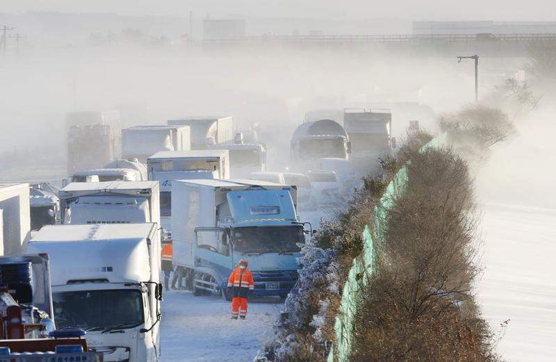 В Японии из-за снежной бури на дороге столкнулись друг с другом 134 автомобиля, сообщает Reuters. Один человек погиб, 10 ранено, образовался многокилометровый затор. Снежная буря замела длинный участок высокоскоростной автомагистрали Тохоку, проходящей с севера на юг Японии, в районе северно-восточной префектуры Мияги.