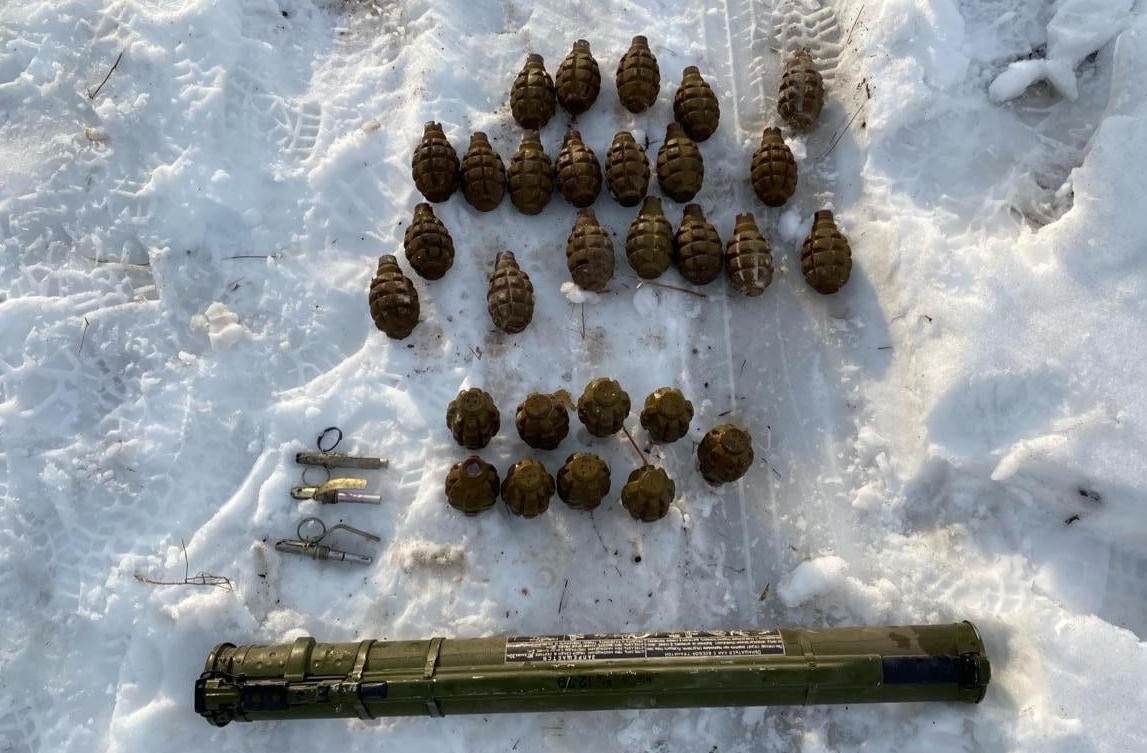 Пограничники Луганского отряда обнаружили тайник с ручными гранатами в Станице Луганской.