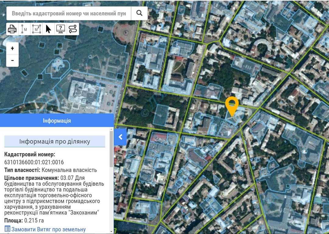 Об это сообщает ХАЦ со ссылкой на кадастровую карту Украины, передает «Главное».