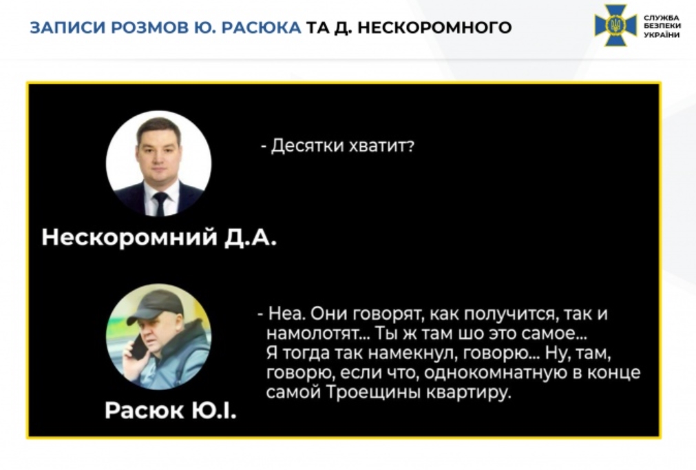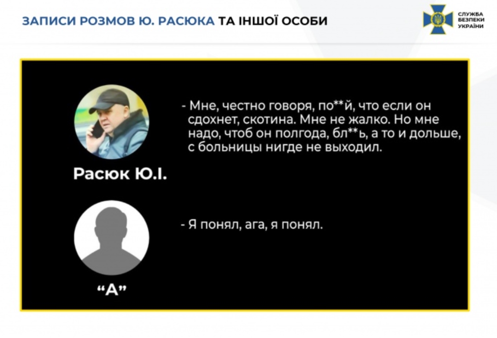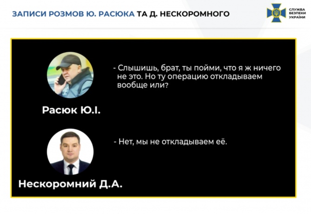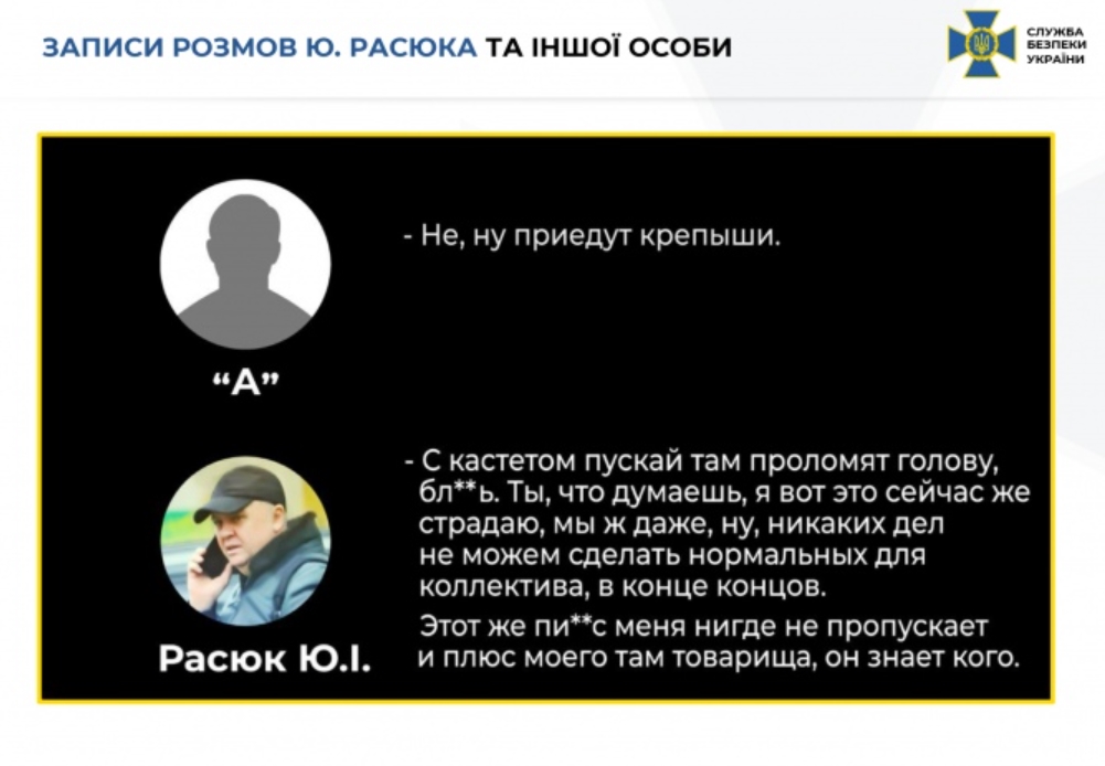 "Среди доказательств, подтверждающих это: видео- и фотоматериалы, аудиозаписи разговоров Расюка, Нескоромного и других лиц, во время которых, в частности, обсуждается организация убийства, исполнители и другие детали", - отметили в спецслужбе.
