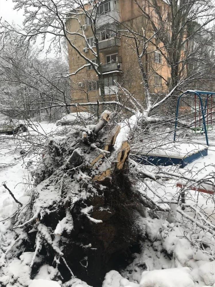 В Одессе за сутки упало почти 500 деревьев и крупных веток, проехать по некоторым улицам невозможно. Рухнули три опоры наружного освещения, в ряде микрорайонов нет света.