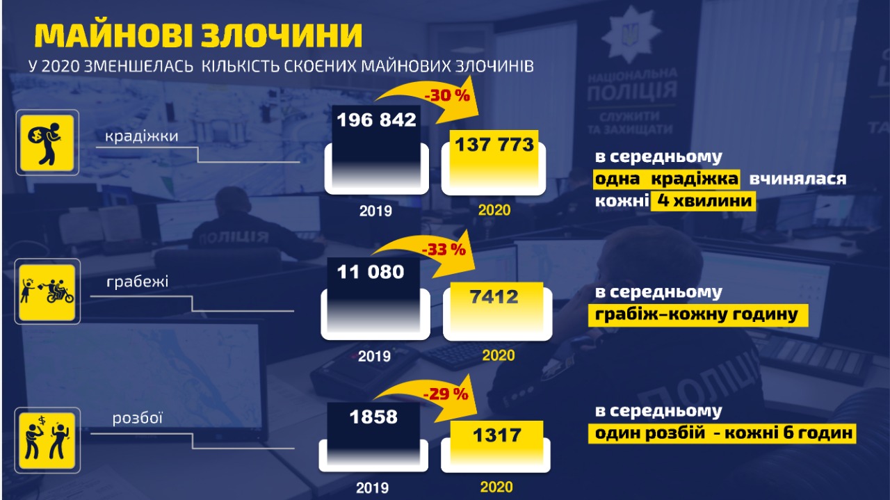 Председатель Нацполиции добавил, что в прошлом году было совершено меньше имущественных преступлений, таких как кражи, грабежей и разбои.