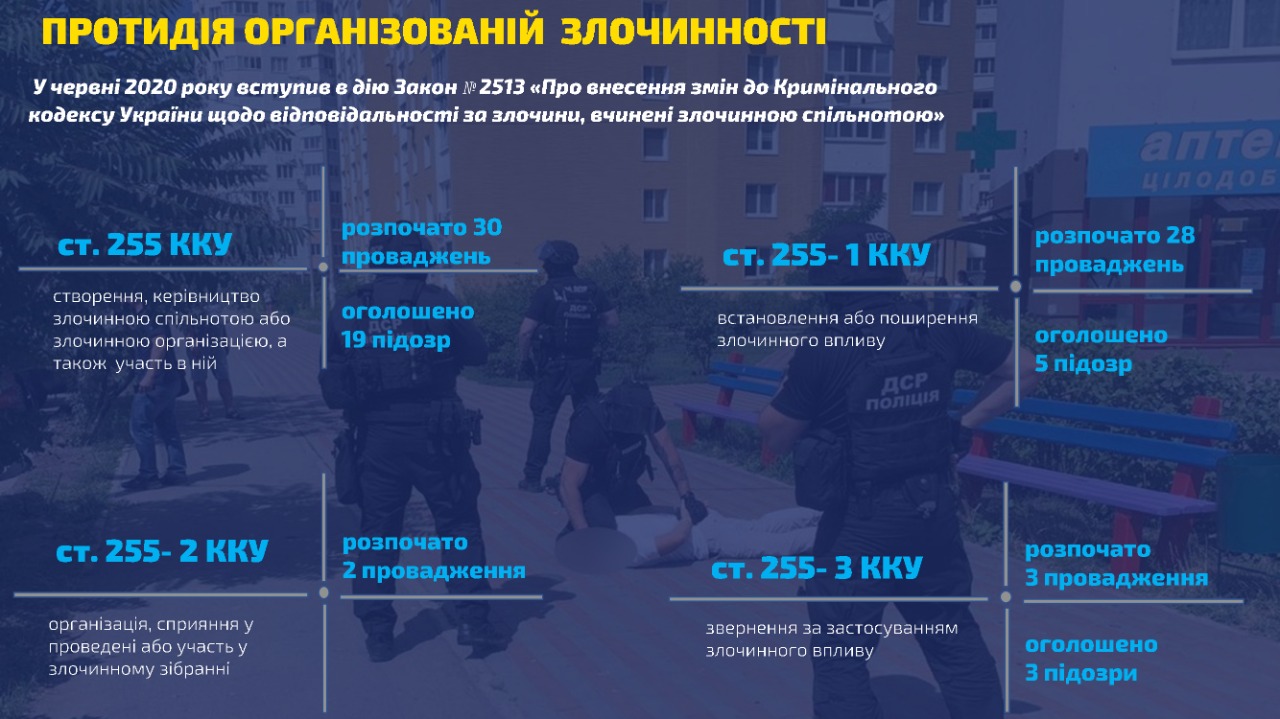 "В 20-м полиция обезвредила 353 организованных группы, для сравнения в 19-м - 275. К уголовной ответственности привлечено почти полторы тысячи участников этих групп, совершивших более 3,5 тысячи преступлений. 500 человек - под стражей. Хочу подчеркнуть, что эти люди - профессиональные преступники. Это не точечные "набеги", а системные продуманные планы. Они не занимаются обычными кражами или мошенничеством. Они совершают убийства, вымогательство, похищение людей", - подчеркнул Клименко.