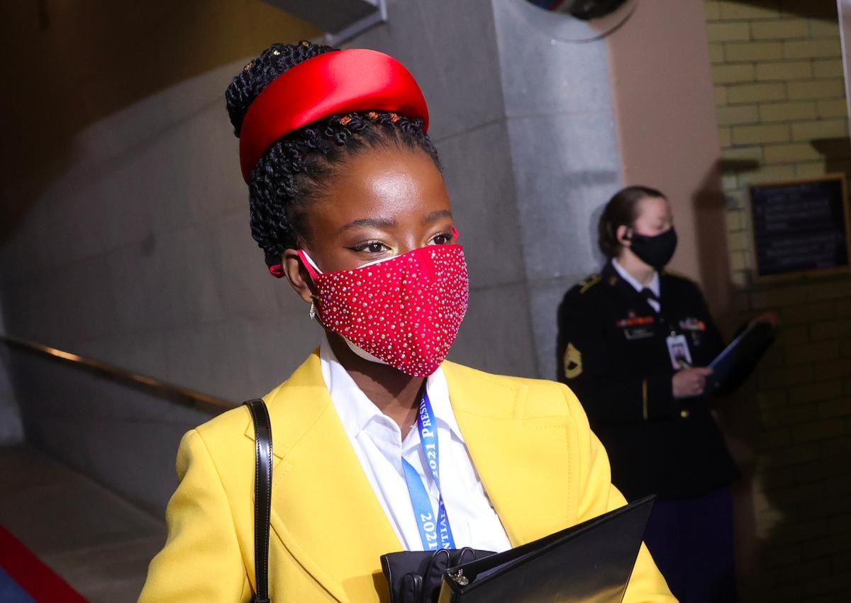 "Американское пристрастие к двойной маске могло бы стать модной тенденцией, если бы ставкой не было спасение жизней. И тогда главным инфлюенсером стал бы Джо Байден. Фирменным знаком президента Соединенных Штатов является то, что он никогда не расстается со своей медицинской маской, обтянутой черной тканевой маской. Во время его инаугурации в январе лица в двойных масках присутствовали повсюду, начиная с вице-президента Камалы Харрис и кончая поэтессой Амандой Гордман (на фото). Соблазну наложения слоев также поддался Том Круз на съемках в Риме в ноябре прошлого года и Деми Мур в Париже в конце января", - пишет журналистка Le Figaro Сабрина Понс.