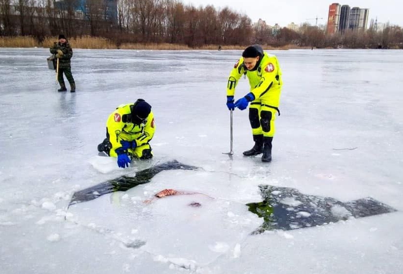 "Столичные спасатели доставали утопленника в заливе Десенка реки Днепр. С помощью бензопилы пришлось вырезать тело изо льда", - говорится в сообщении.