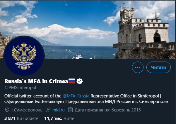 Сам профиль открыт в марте 2015 года, то есть через год после аннексии полуострова.