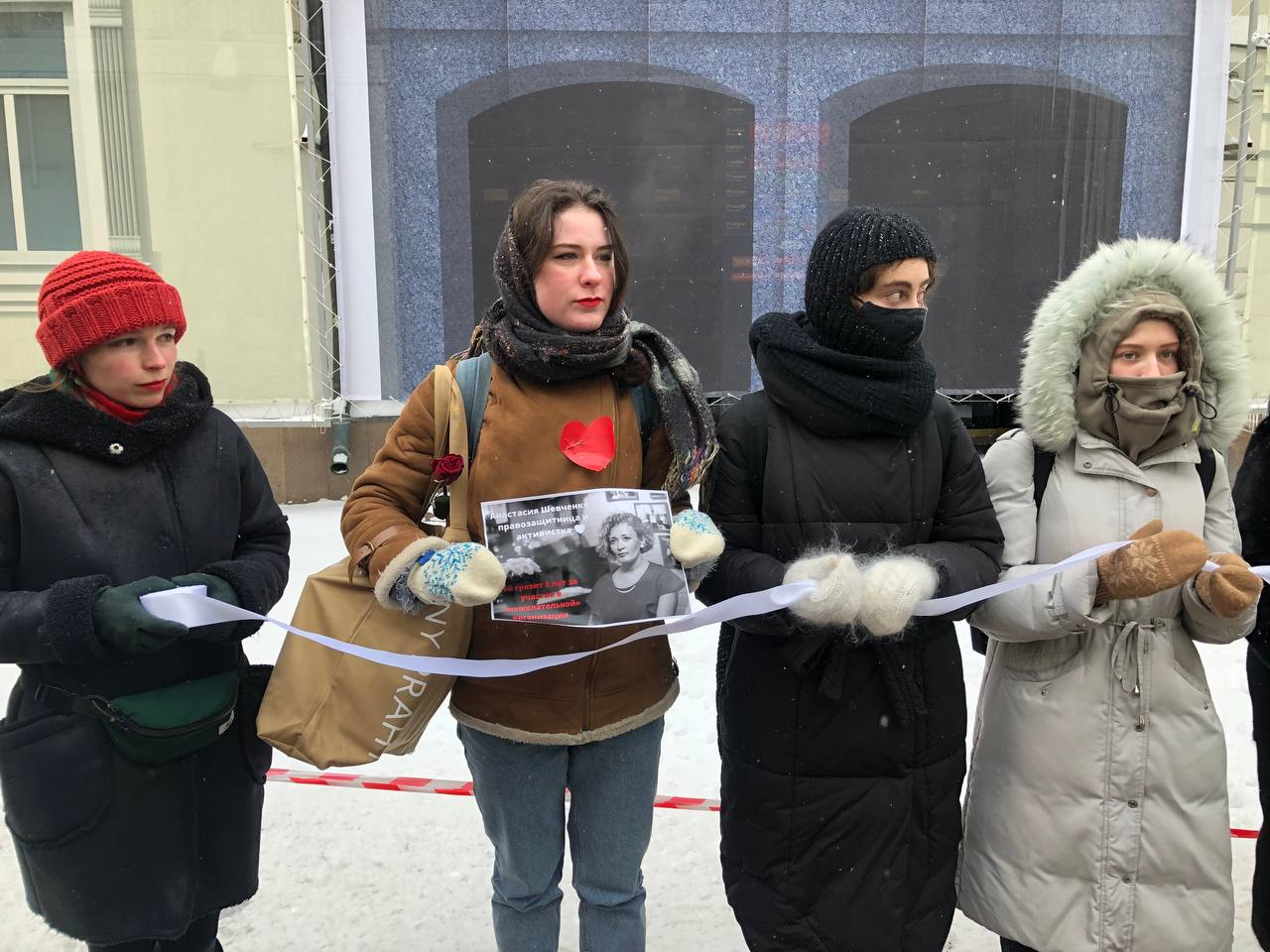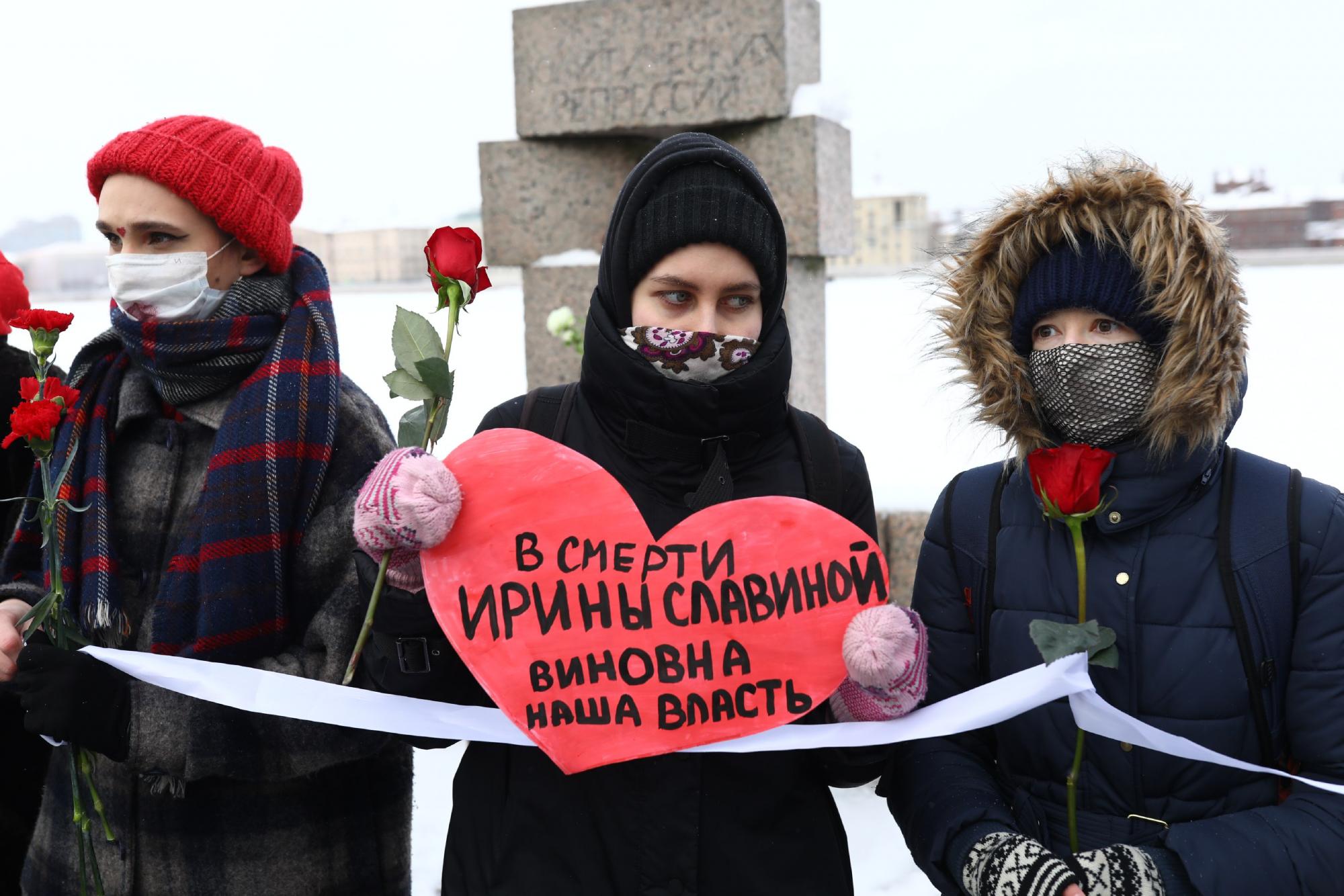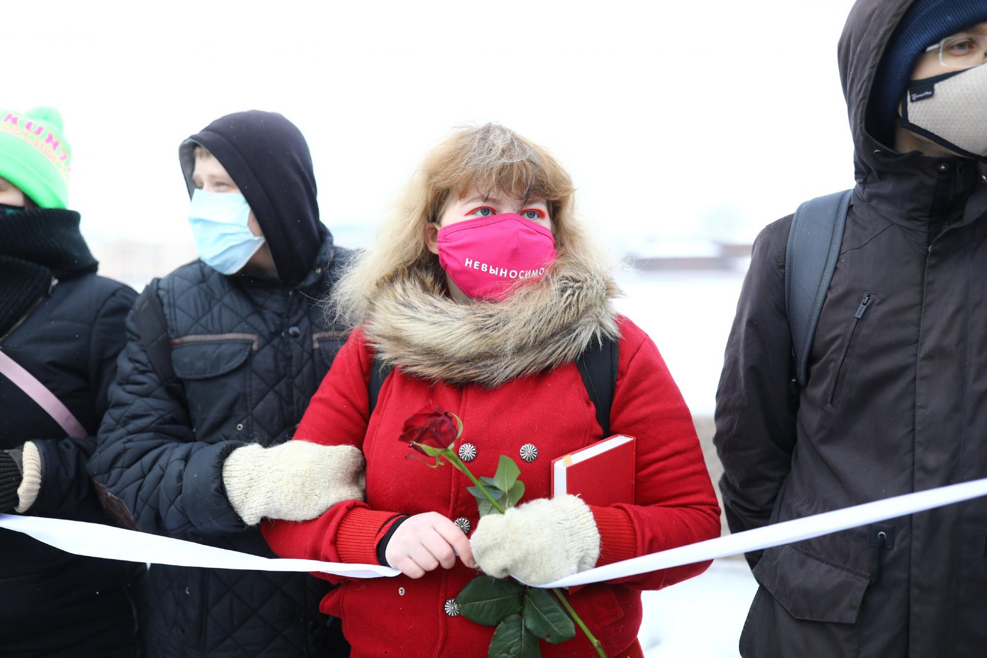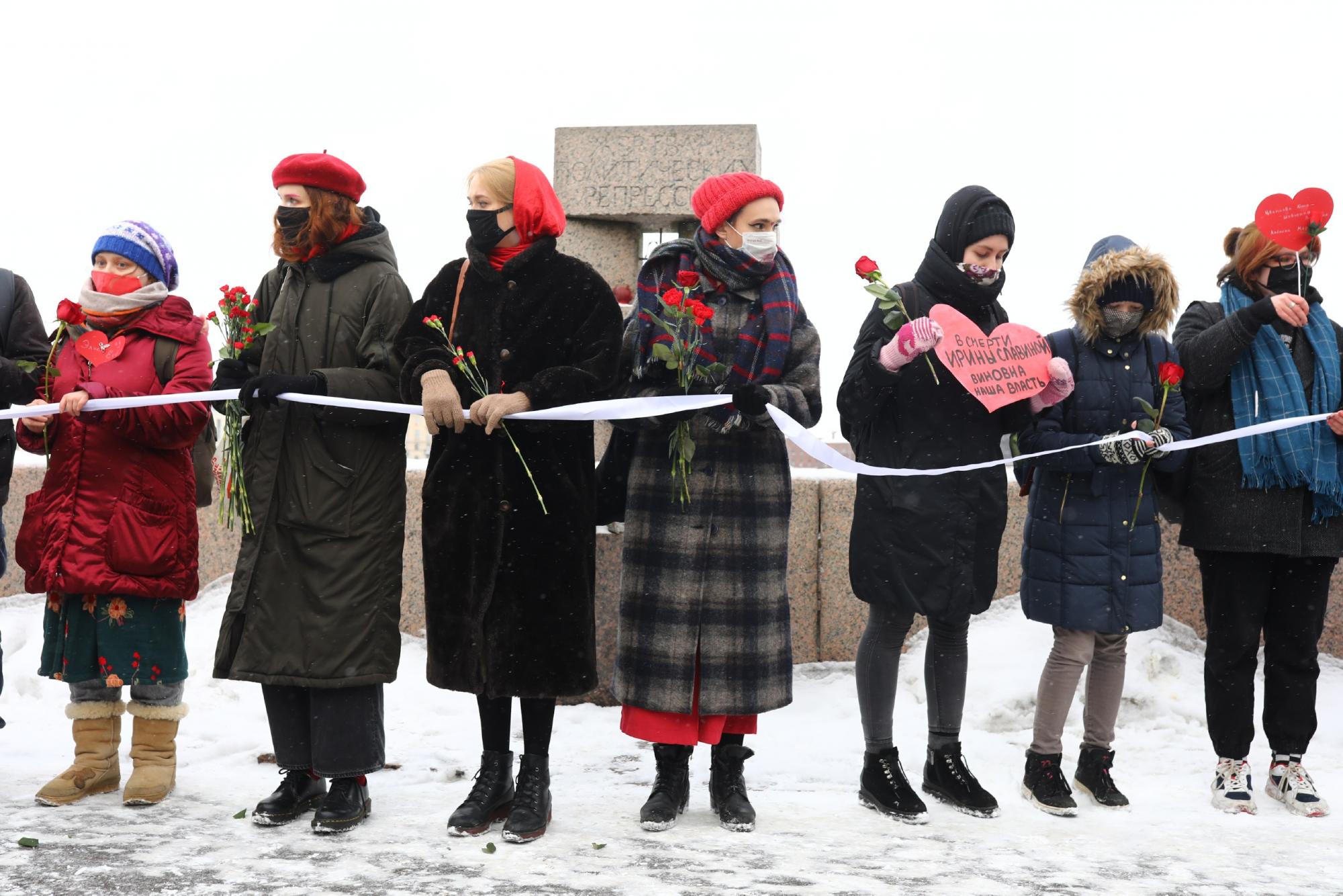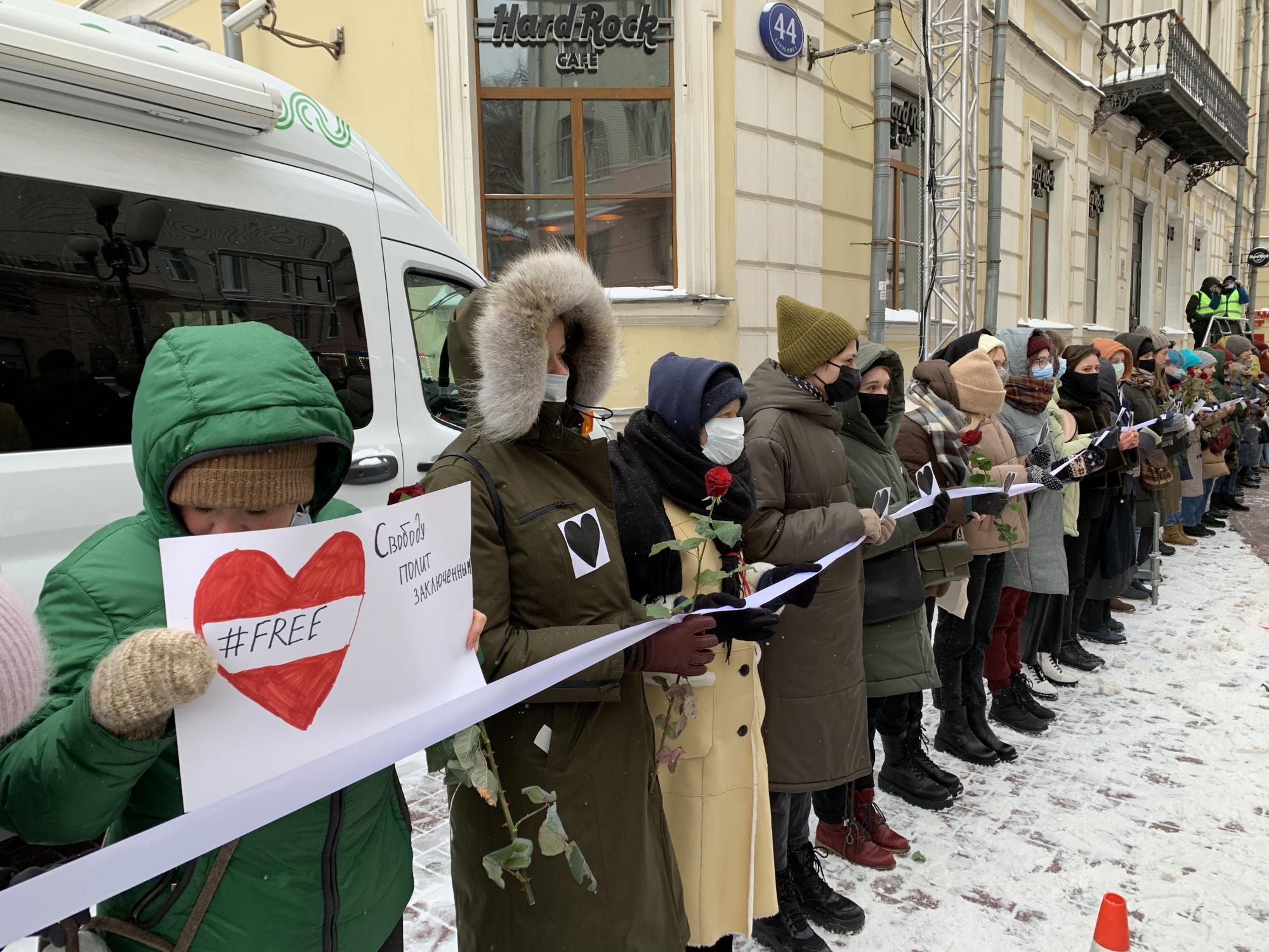 В Москве и Санкт-Петербурге начались акции женской солидарности. Активистки выстроились в «цепь солидарности» в поддержку Юлии Навальной и политзаключенных.