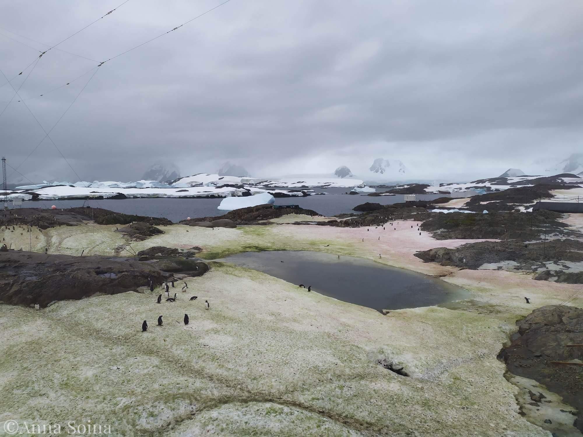 За цветным снегом возле станции можно наблюдать в конце антарктического лета. Такая окраска появляется из-за развития в снегу микроскопических водорослей, которые размножаются спорами, не боятся экстремальных температур, поэтому сохраняются в снегу в течение всей зимы. Когда погодные условия становятся благоприятными, споры начинают прорастать.
