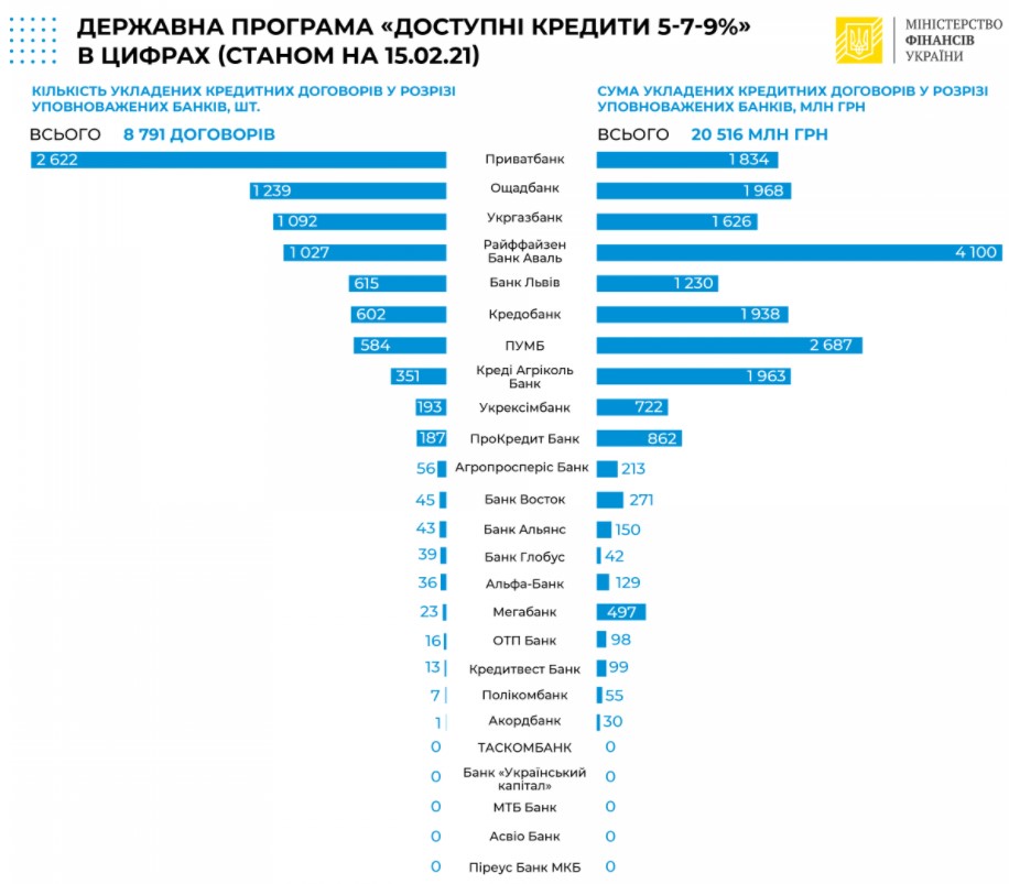 С момента старта программы «Доступные кредиты 5-7-9%» банки уже выдали 8791 займов на общую сумму в 20,5 миллиарда гривен, сообщает «Главное» со ссылкой на пресс-службу Минфина.