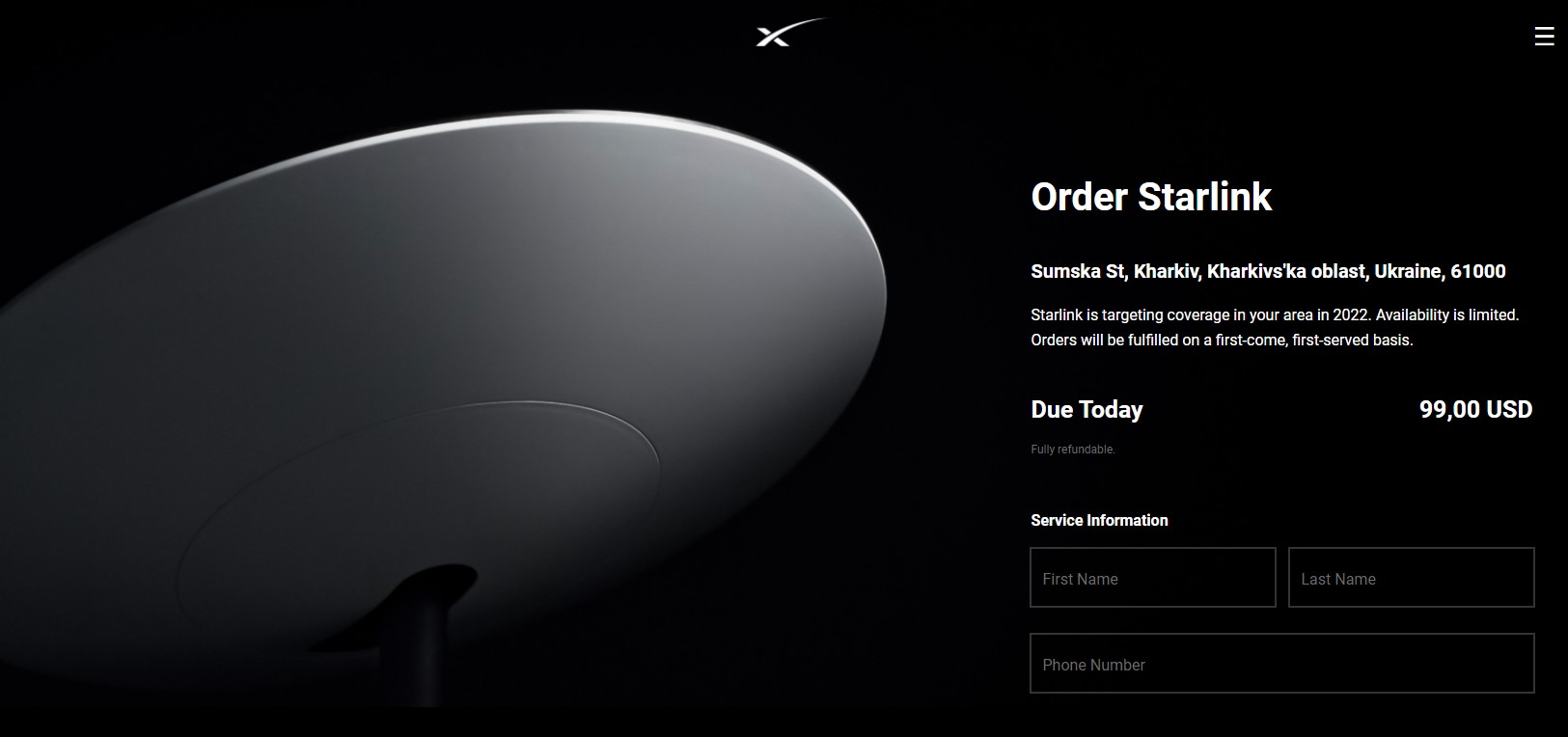 Если на сайте Starlink попробовать оформить заказ услуги, и при этом выбрать какую-нибудь из украинских локаций — появится надпись о том, что «для этой территории покрытие предусматривается в 2022 году».