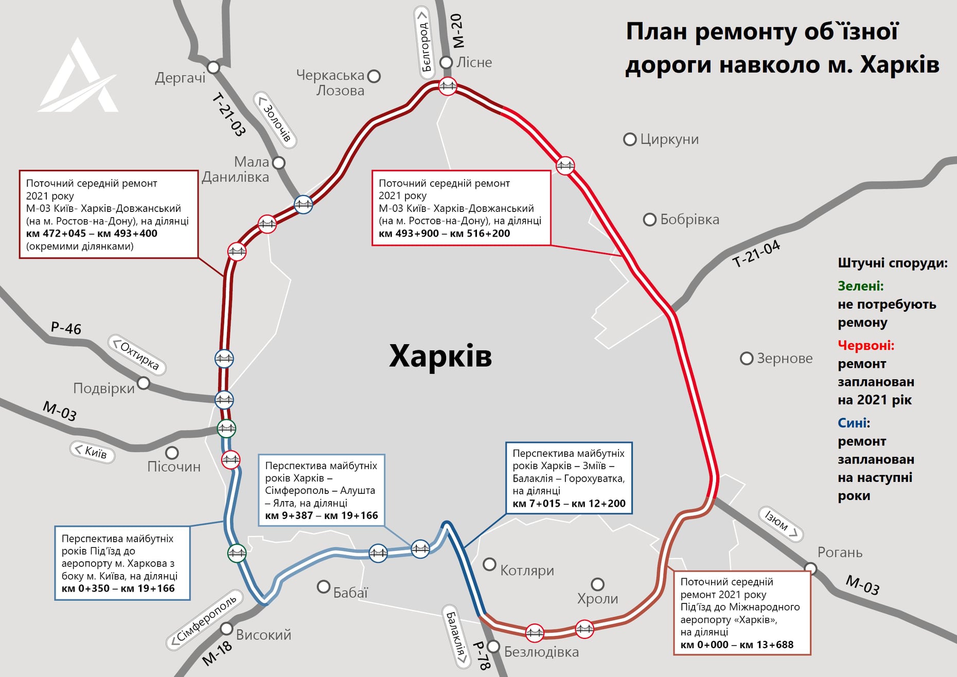 Капитальный ремонт на объездной дороге вокруг Харькова не проводился более 10 лет и межремонтный срок исчерпан на 100%.