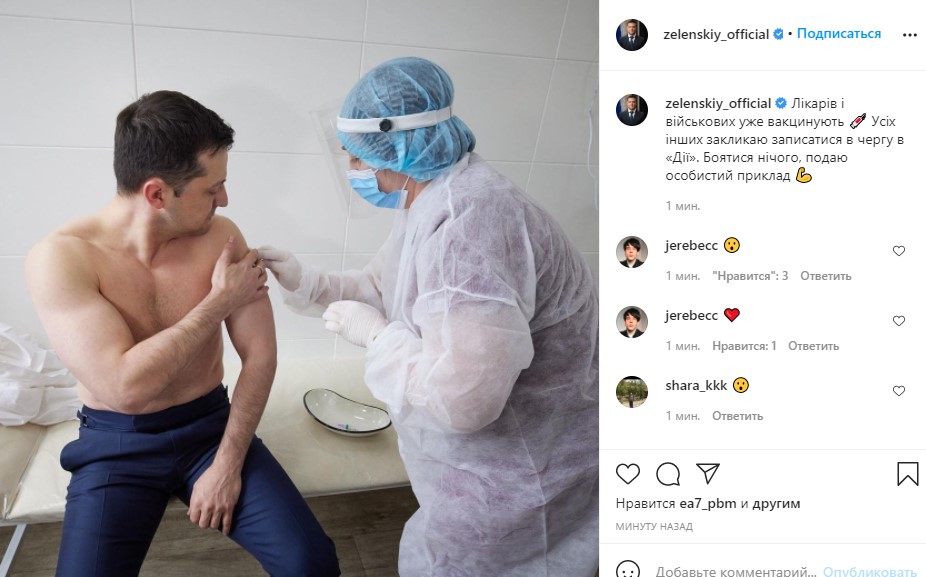 Сегодня президент Украины Владимир Зеленский вакцинировался индийской вакциной CoviShield.