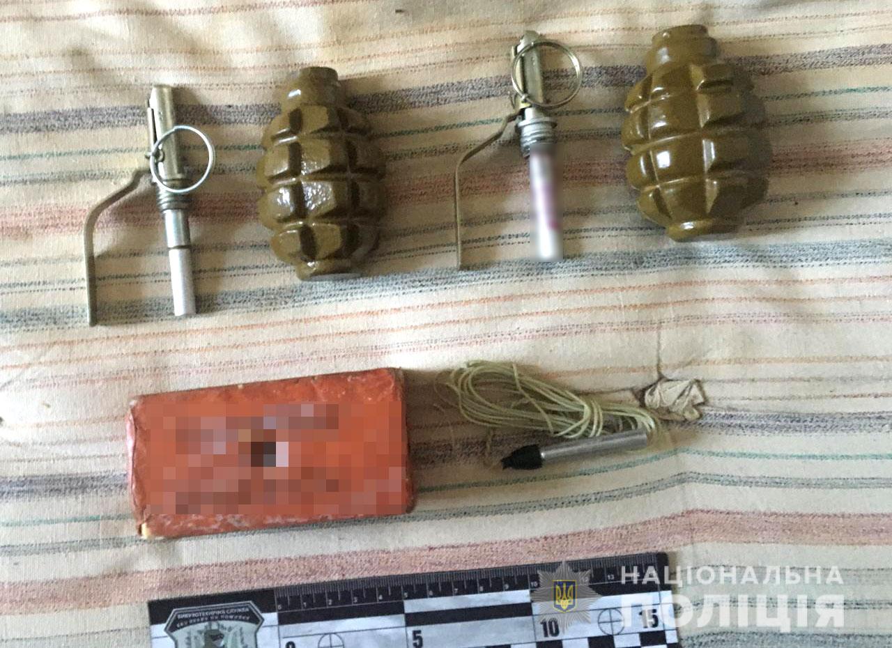 Во время осмотра помещения потерпевшего, полицейские обнаружили и изъяли: устройство для отстрела резиновых пуль, два корпуса гранаты Ф-1 и запалы к ним, тротиловую шашку и электронное детонирующее устройство.