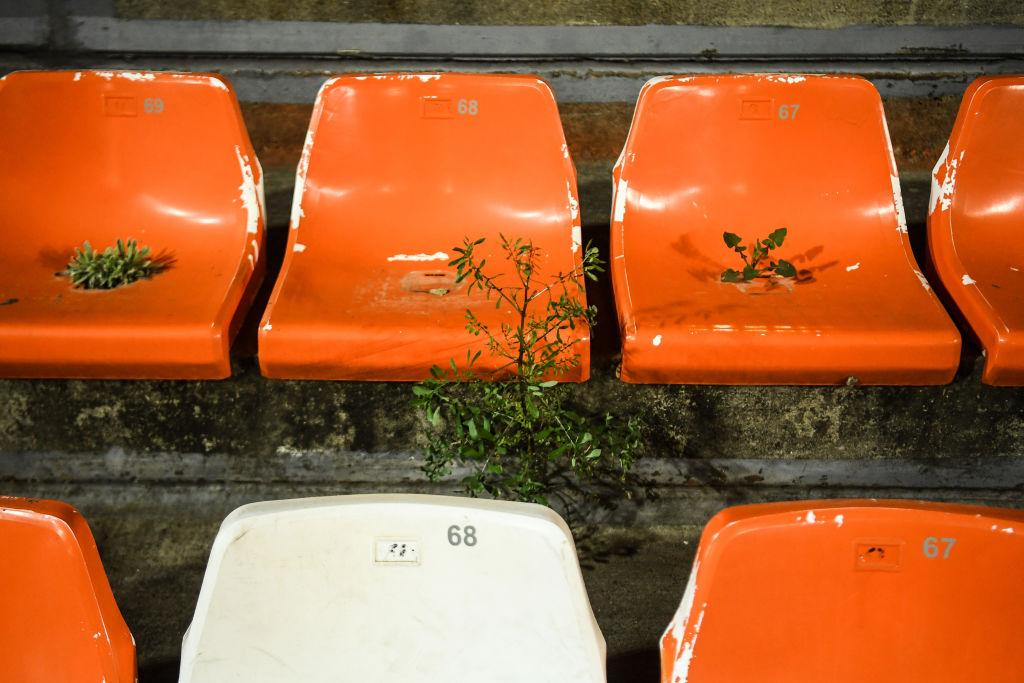 Трибуны стадиона "Месталья", где играет "Валенсия", из-за длительного отсутствия болельщиков во время пандемии начали зарастать сорняками.
