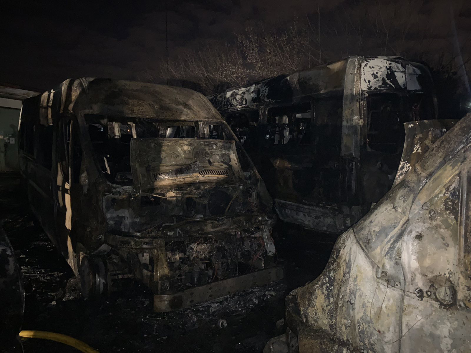 На автостоянке горели сразу 4 микроавтобуса: «Fiat Ducato», два - «Mercedes - Benz Sprinter», «Peugeot Boxer», и легковой автомобиль «Ford Mondeo».