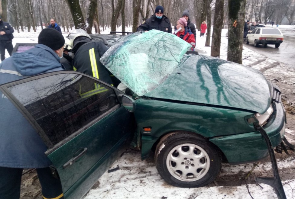 В Харькове на ул. Библика водитель легкового автомобиля Volkswagen не справился с управлением и врезался в дерево.