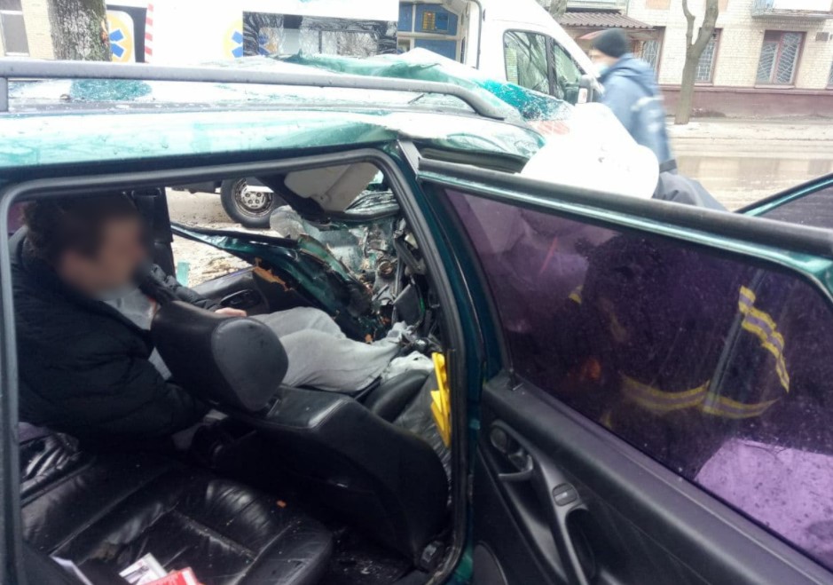 В результате столкновения водитель авто зажало между рулем и сиденьем. Пассажир смог самостоятельно выбраться из разбитого транспортного средства.