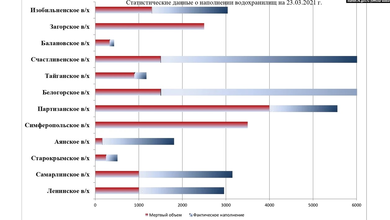 В "Министерстве ЖКХ Крыма" обновили данные наполняемости водохранилищ полуострова. Так, по состоянию на 23 марта, на "мертвом объеме" все также остаются Симферопольское и Загорское водохранилища.