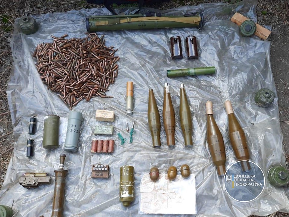 "В ходе обыска в помещении обнаружено и изъято: 1 килограмм тротила, 2 электродетонатора, 9 запалов МД-5М, две малые прилипающие мины, кумулятивный заряд «Планка», противопехотная мина, противопехотная выпрыгивающая осколочная мина кругового поражения, 3 РГД-5 , 1 реактивная противотанковая граната РПГ-26, 6 гранатометных выстрелов, реактивный осветительный патрон РОП-40, около 1000 патронов различных калибров, а также карта-схема Славянска и Краматорска с изображением объектов критической инфраструктуры Донбасса", - сообщили в прокуратуре.