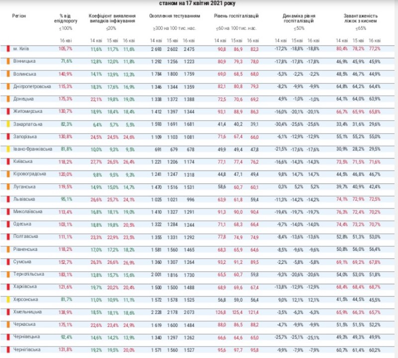 В Украине уже в шести областях уровень госпитализаций пациентов с коронавирусом соответствует норме. За последние сутки улучшилась ситуация во Львовской и Тернопольской областях.