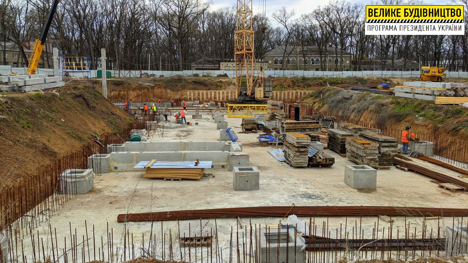 «На сегодняшний день на строительную площадку завезено более 30% колонн. Также завезена арматура в полном объеме, есть опалубка. На этот объект доставляют железобетонные изделия от трех производителей: Бориспольского завода, Балевского и Харьковского завода «Эталон». Смонтирован башенный кран, есть два передвижных крана: мощностью 50 и 25 тонн. Все это нужно, чтобы начать процесс возведения каркаса», — рассказал директор Департамента капитального строительства Харьковской ОГА Сергей Жуков.