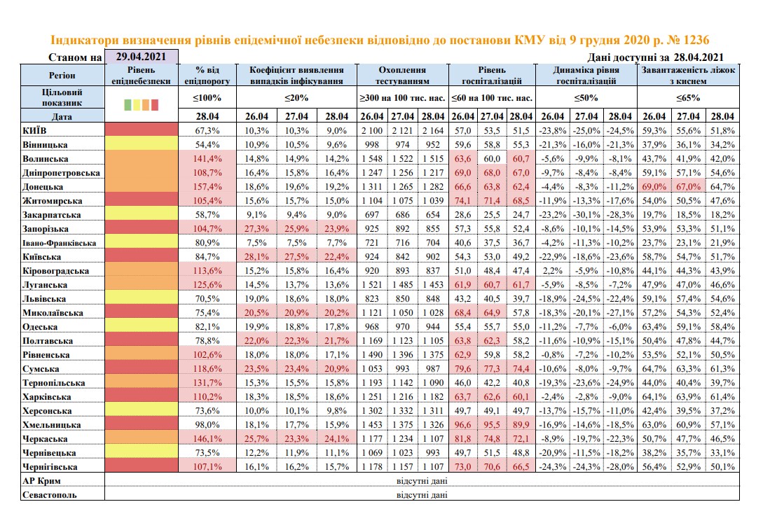 "Красными" пока остаются Киев, Житомирская, Запорожская, Киевская, Николаевская, Полтавская, Сумская, Харьковская, Хмельницкая и Черниговская области.