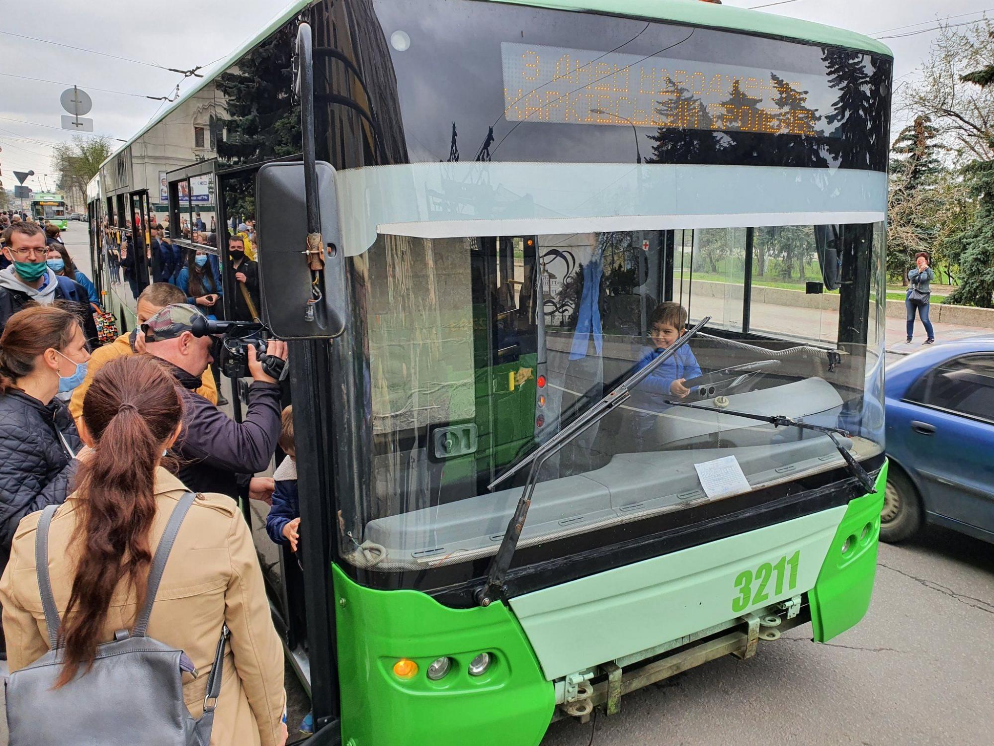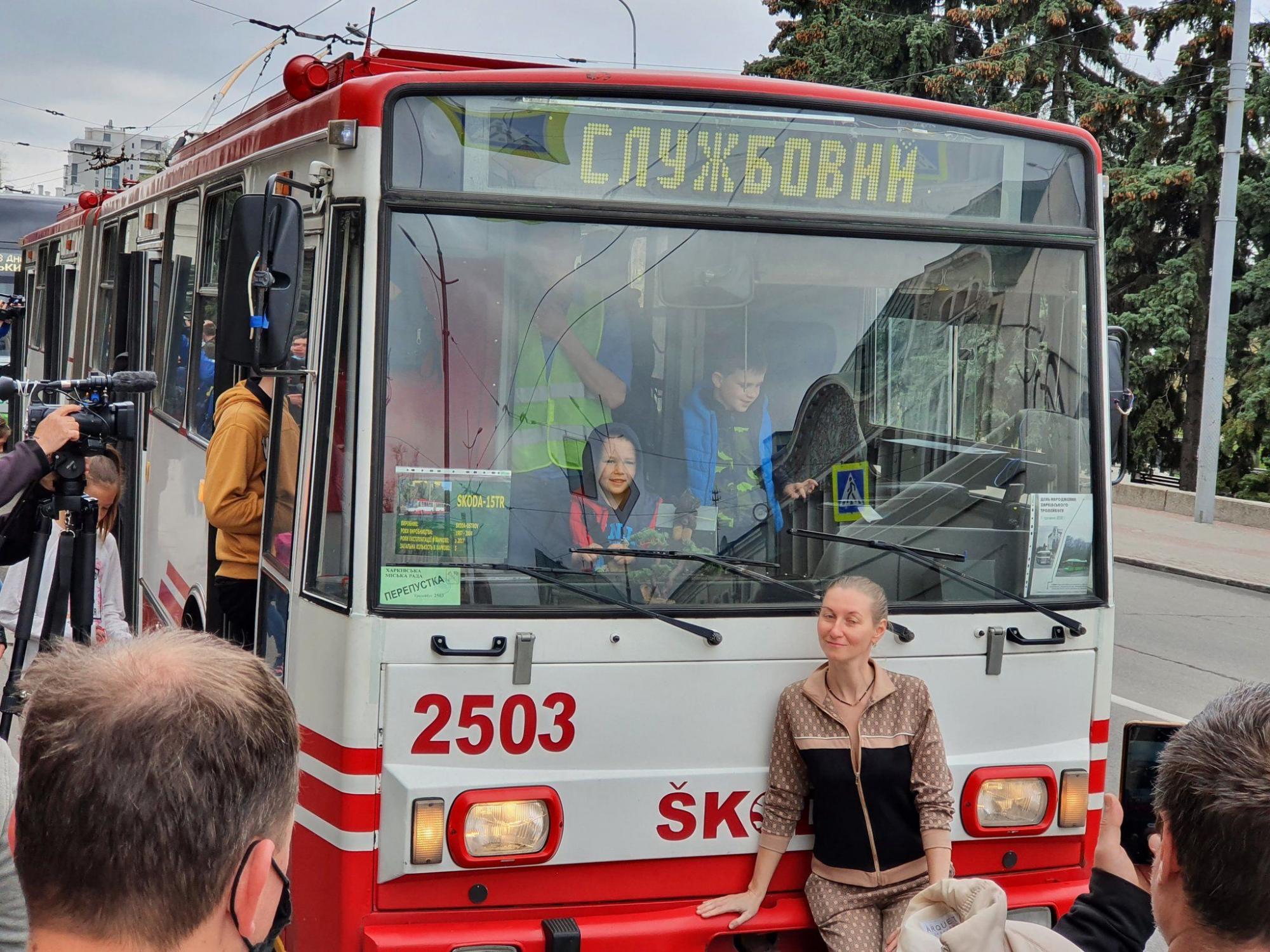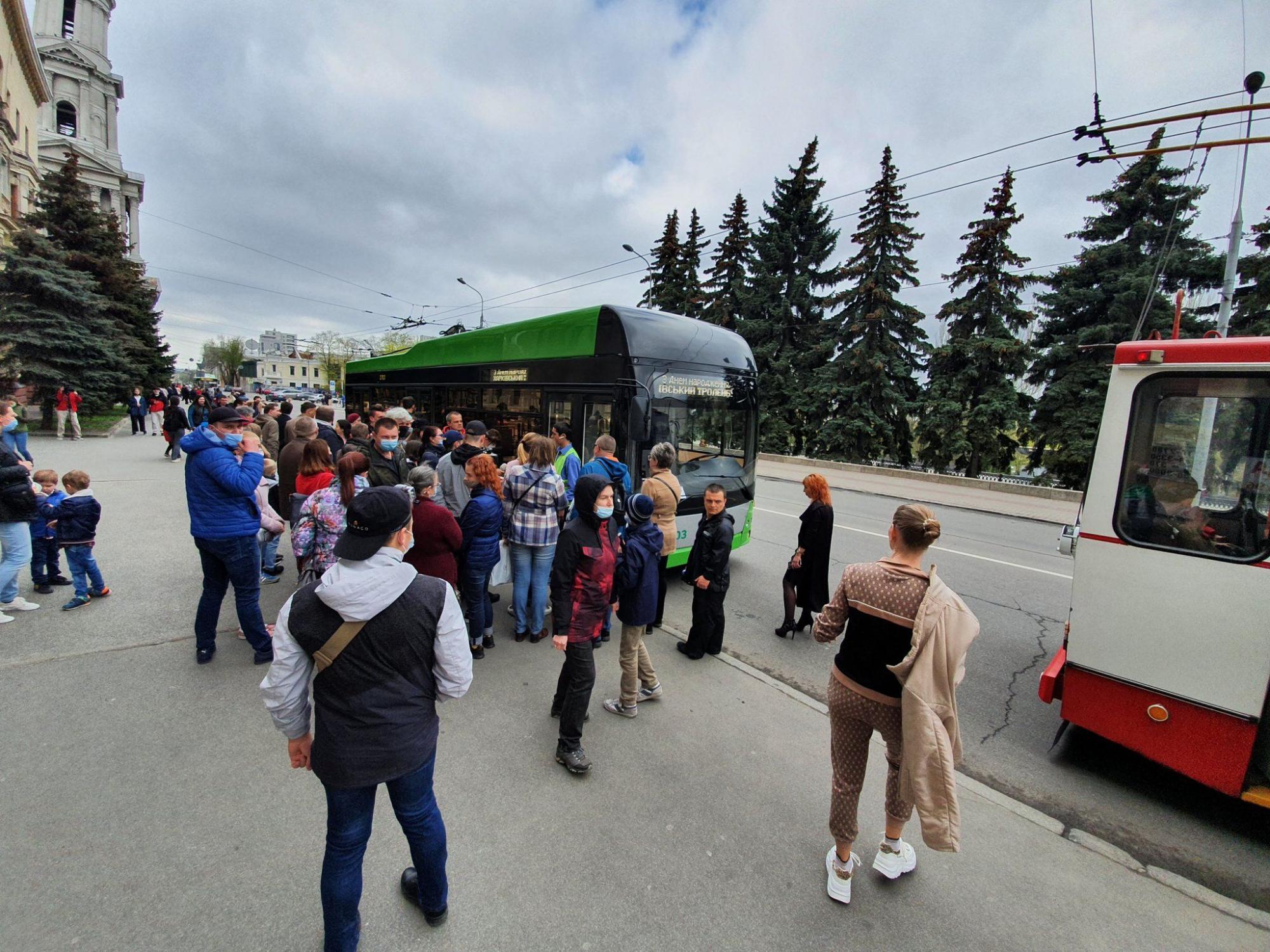 Около полудня эти же троллейбусы превратились в экспонаты выставки, организованной возле ст. м. «Госпром». Там были представлены самые современные троллейбусы с автономным ходом, модели «Богдан», ЛАЗ, чешская «Шкода» 1997 года выпуска и спецтроллейбус технической помощи, выпущенный в середине 1980-х годов.