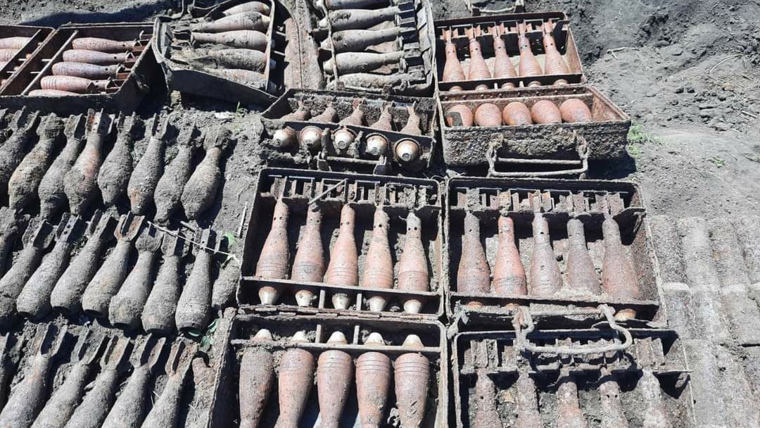 После осмотра территории специалисты изъяли 163 единицы боеприпасов: 10 артснарядов диаметром 45 мм и 153 минометные мины диаметром 50 мм.