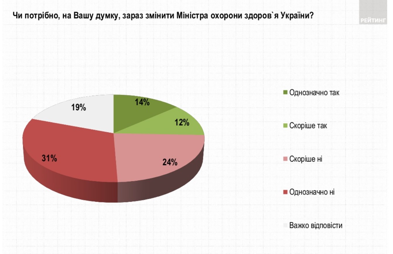 "55% считают, что сейчас не нужно менять министра здравоохранения. 25% - поддерживают назначение нового главы министерства".