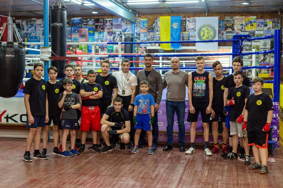 Фото Шапран Сергей Валентинович с детьми в боксерском зале “Спартак”